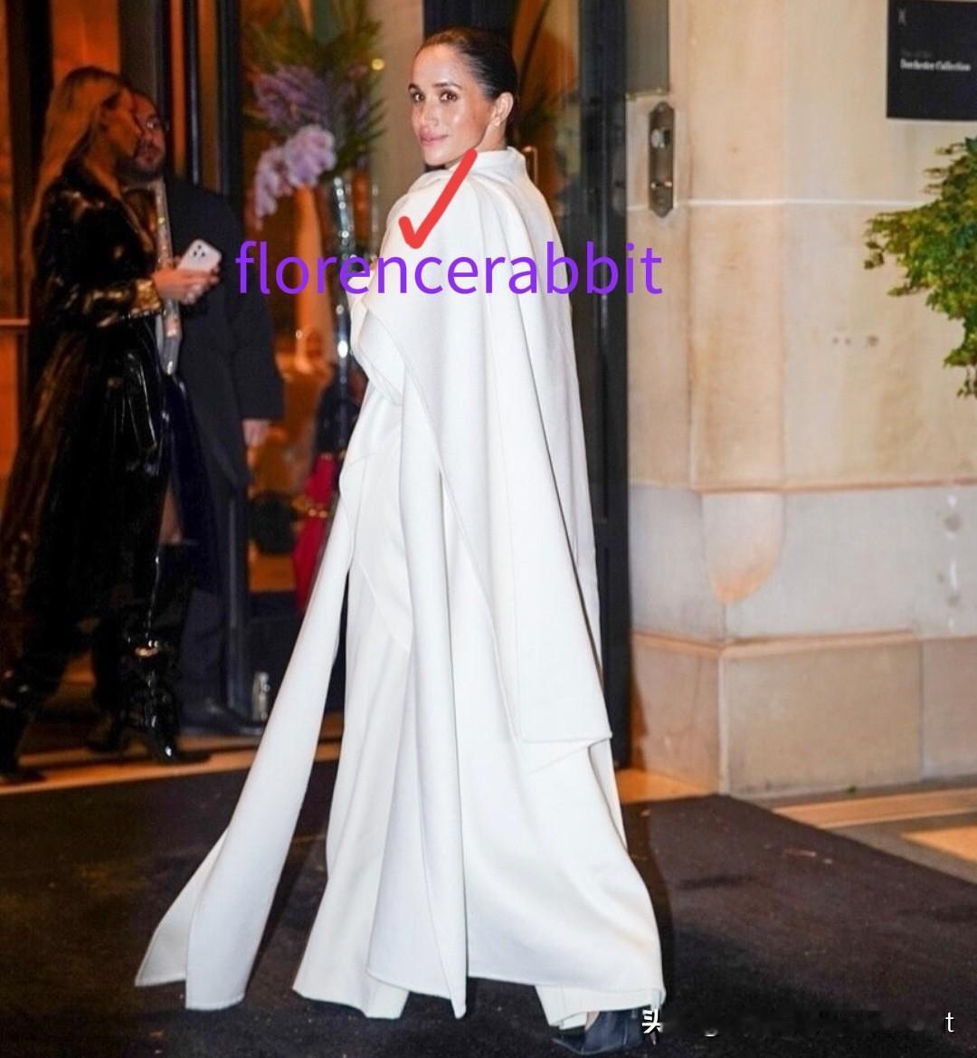 周六,梅根·马克尔首度现身巴黎时装周。 她身着白色纽扣衬衫与长裤,外披白色超大披肩斗篷,脚蹬高跟鞋,和马库斯一起出现在巴黎世家秀场。只见她迈着模特步摇曳生姿,迎着闪光灯步入……坐了10多个小时飞机的马克尔有点着急,出门连床单都拖着~