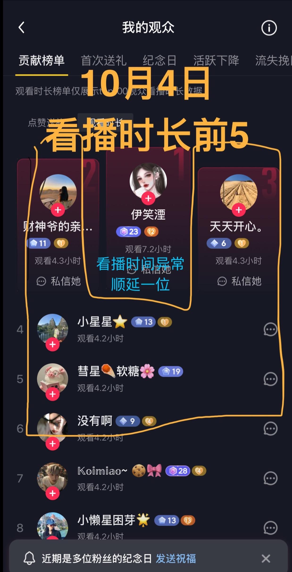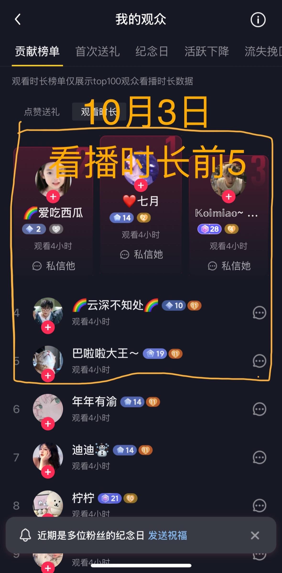 4️⃣周年看播时长前五名单来咯。感谢大家的支持~联系客服填地址发货就...