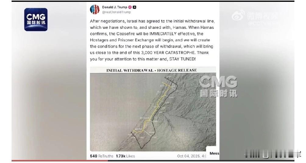 特朗普发布以色列“初步撤军线”地图。美以又一次给哈马斯设的陷阱,又一次欺骗全世界