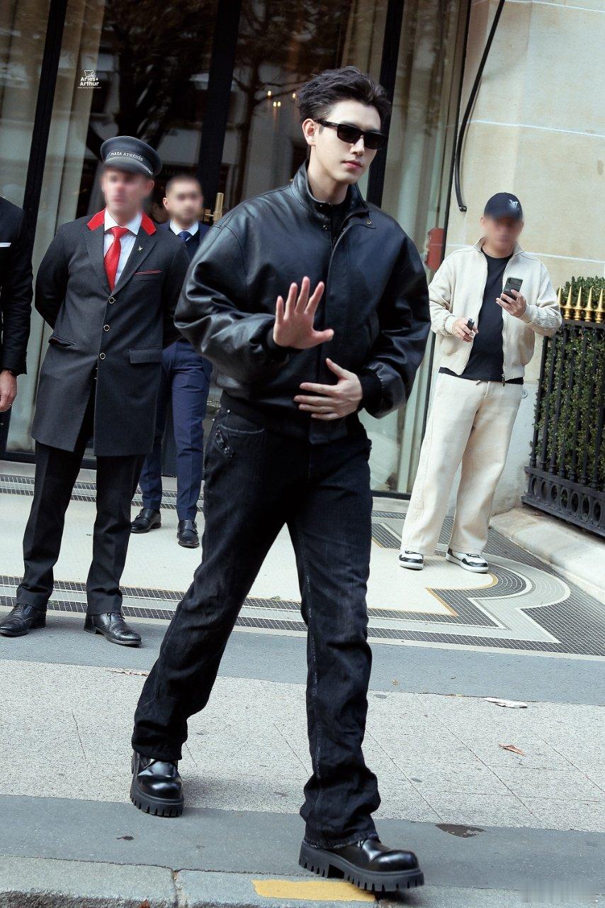 陈飞宇嘴角压不住了陈飞宇外媒镜头被阿瑟帅到了!巴黎秀场AllBlack穿搭又