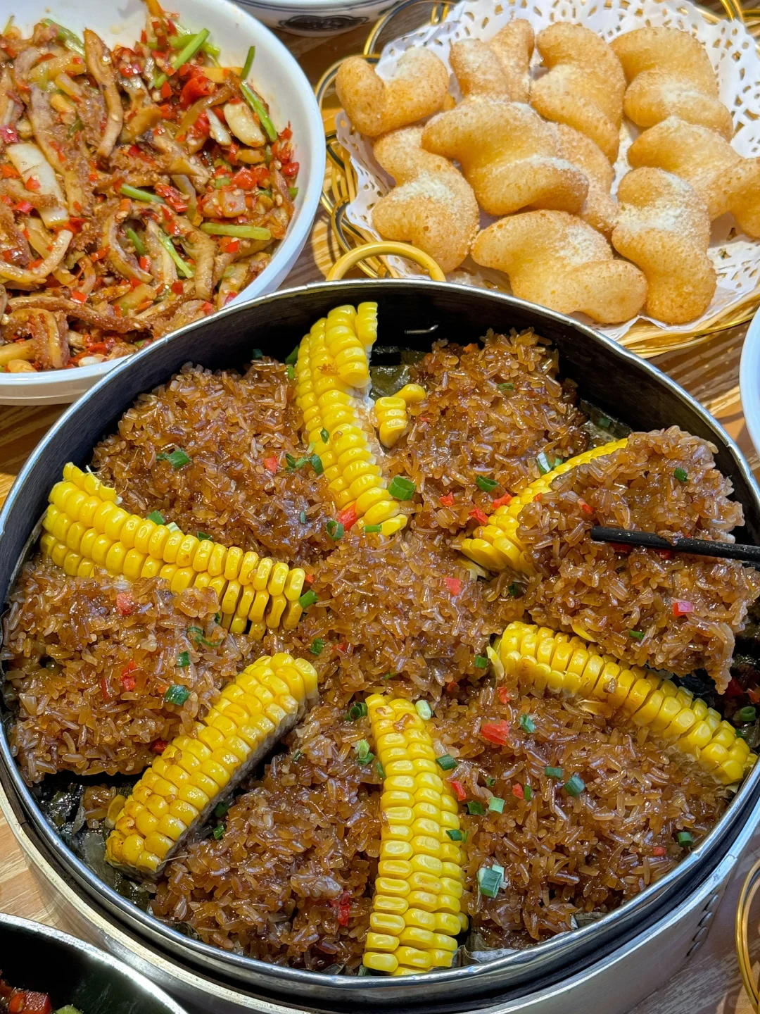 我们点了整整一桌都没踩雷!芝士拉丝烧卖!!吃完又点了两份!土豆粉炖牛腩,炖的好入味,配上土豆粉真的Q弹软糯巨好吃!五谷杂粮一定要推荐,回头客最爱的菜之一,软糯香甜…咸蛋黄茄子、肉沫莴笋丝不能吃辣的点这个。