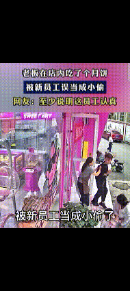 山东烘焙店老板尝了一下自家月饼,被未曾谋面的新员工当成小偷。 这样有责任心的员工必须奖励! 首先,她不认识老板。其次,如果被别的客人看到有样学样。第三,她完全可以假装没看到,但是她追出去了,抓住老板的衣服直接耗回去。 当然这剧情,感觉是短剧才会发生的,所以这不会是老板为了宣传自家的月饼自己都吃,拍的段子吧。剧名叫《霸道总裁爱上打工的我》。