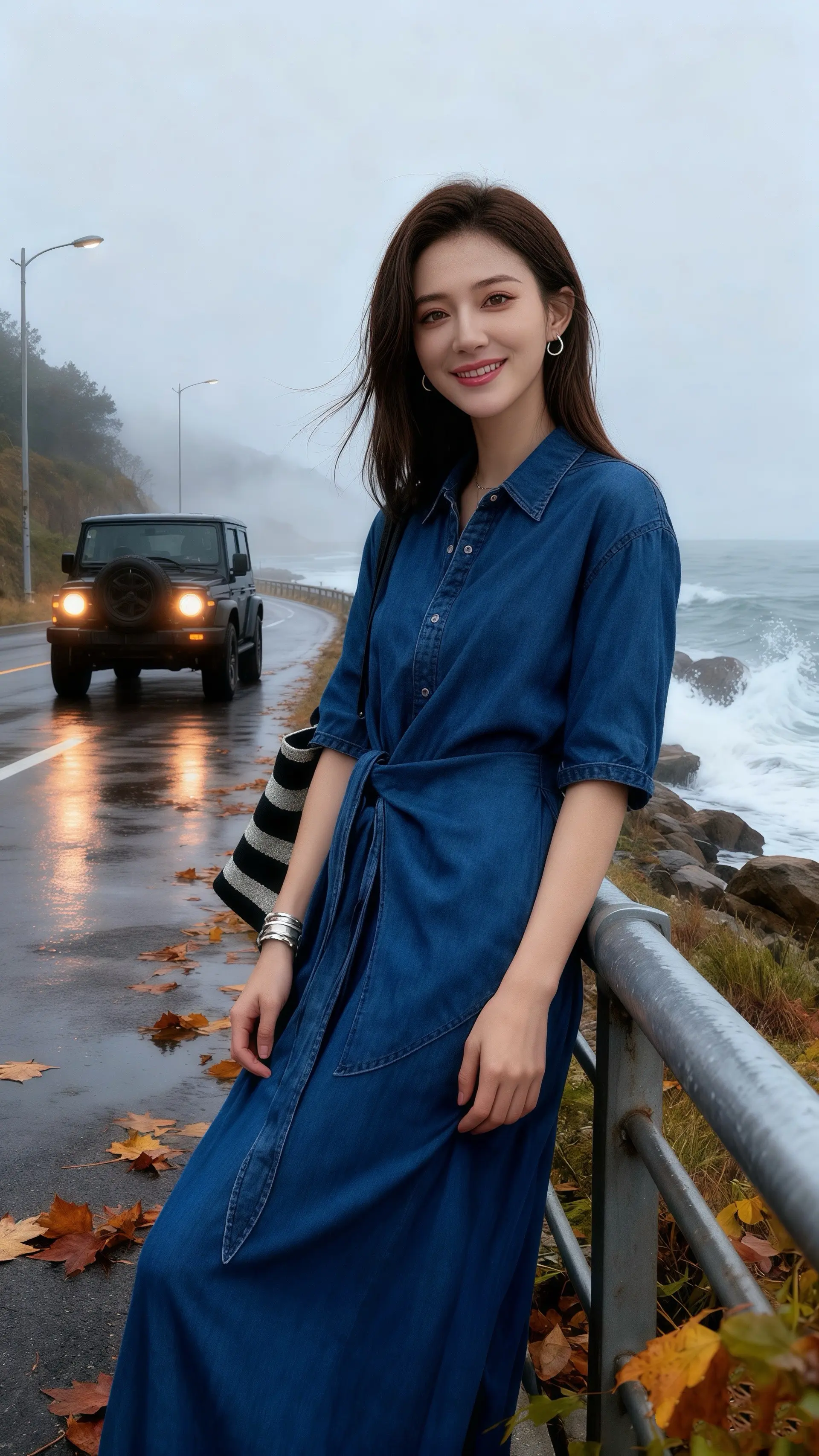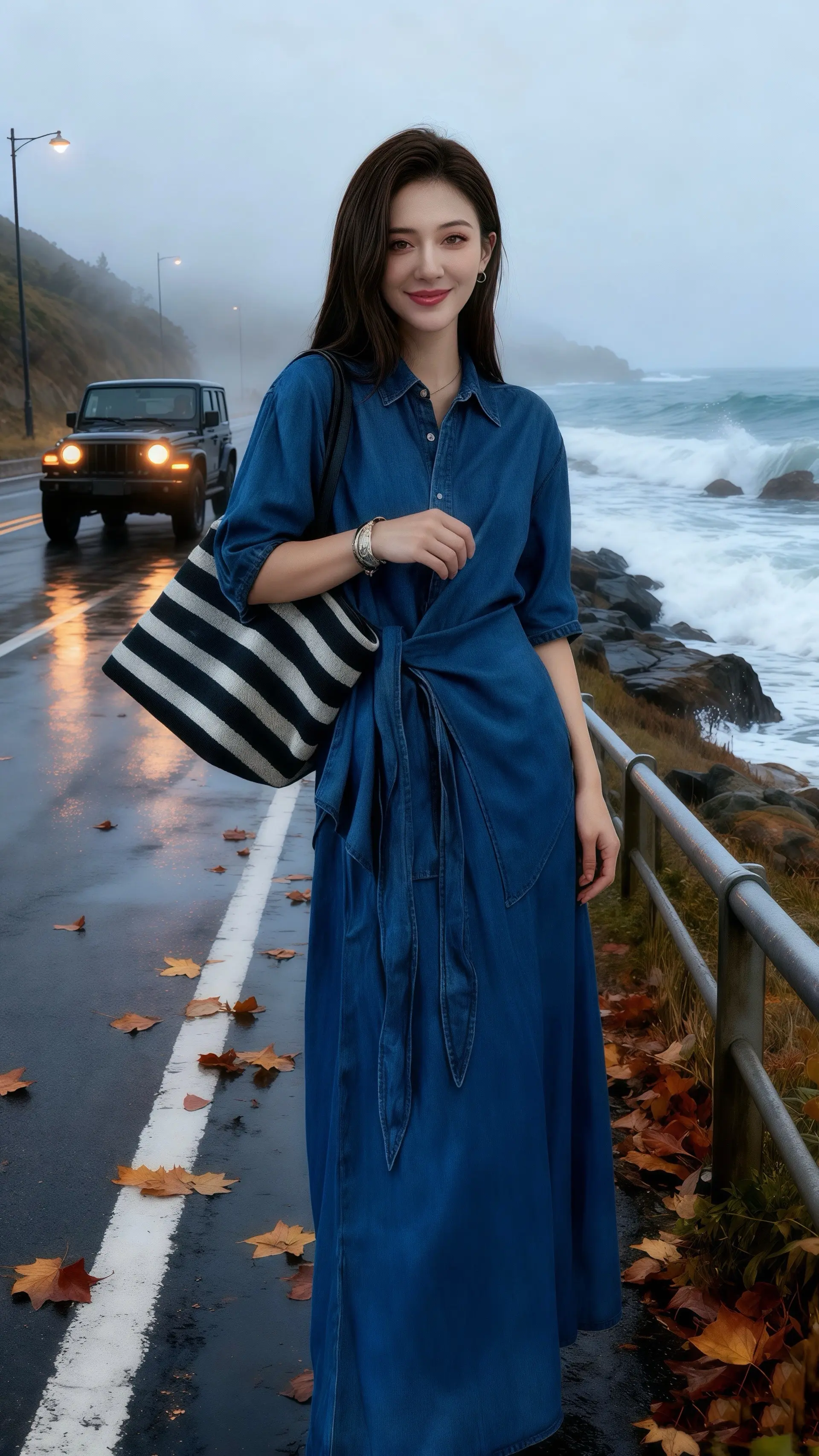 《海边的衬衫与心动》 许妍站在临海的咖啡馆窗边,浅绿色条纹衬衫外搭的...