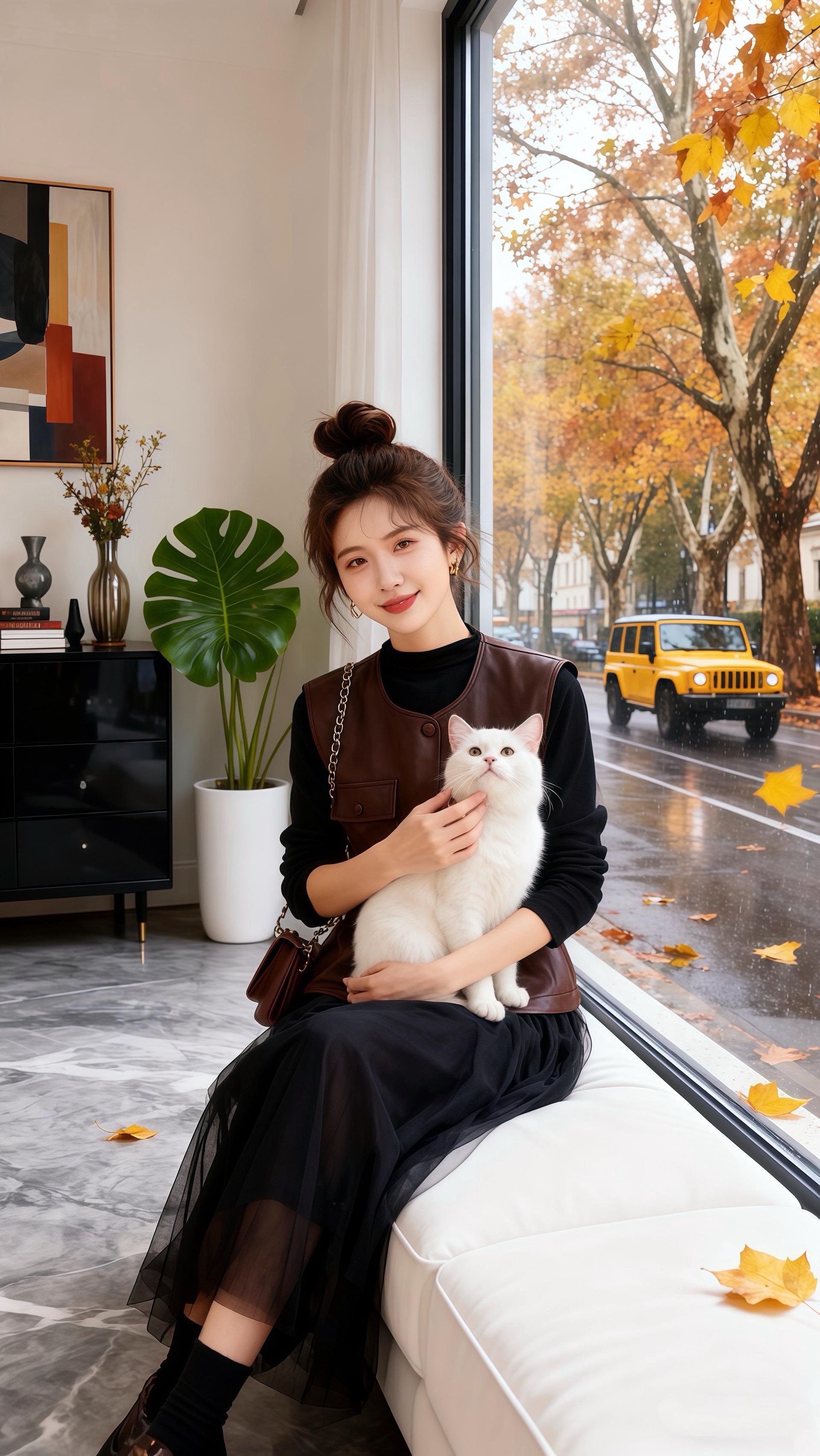 窗外细雨簌簌,落叶在地面铺成金色的毯。皓明走到她身边,目光落在她身上:“你总是能在穿搭里藏着小心思,就像你这个人,相处越久