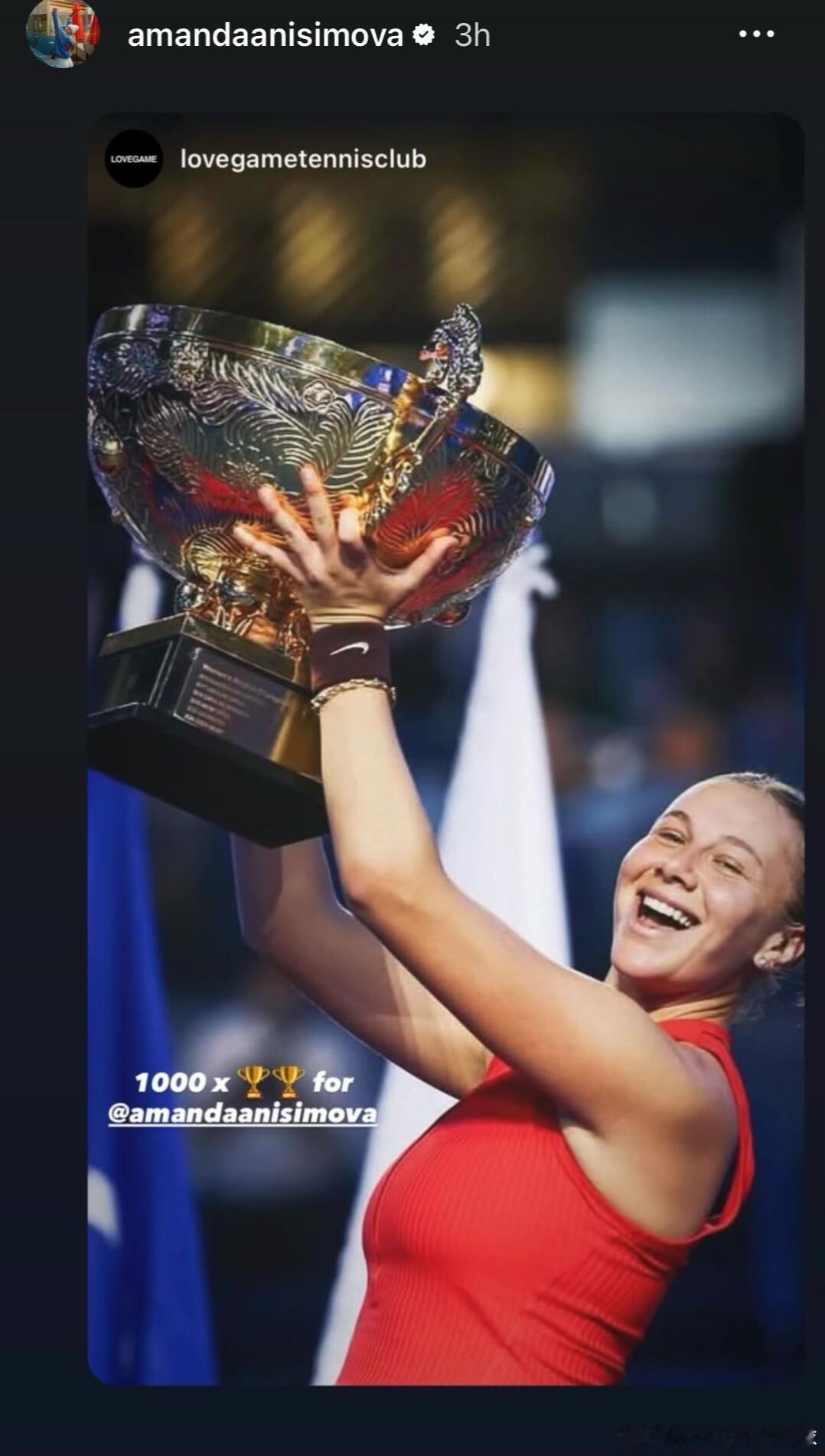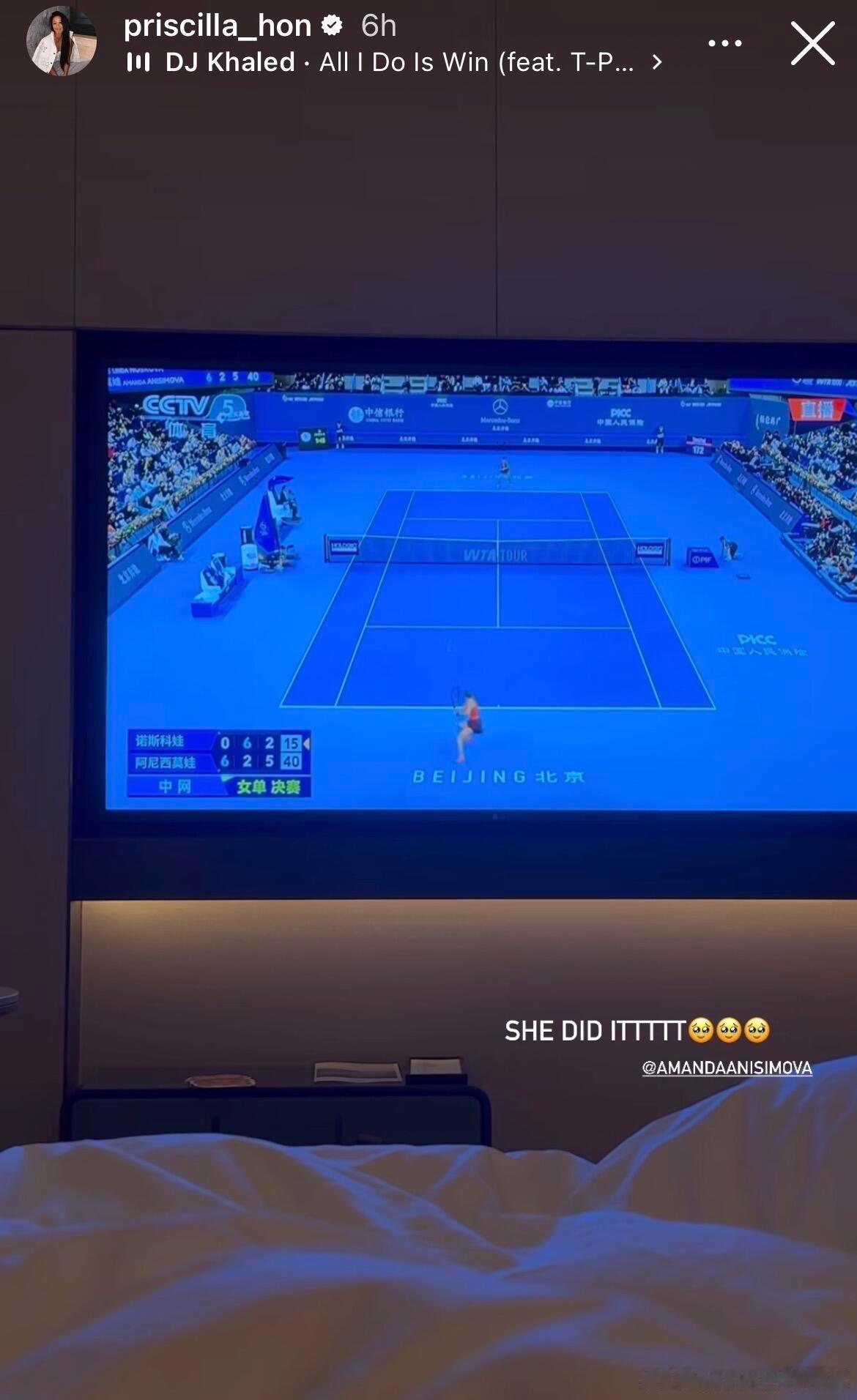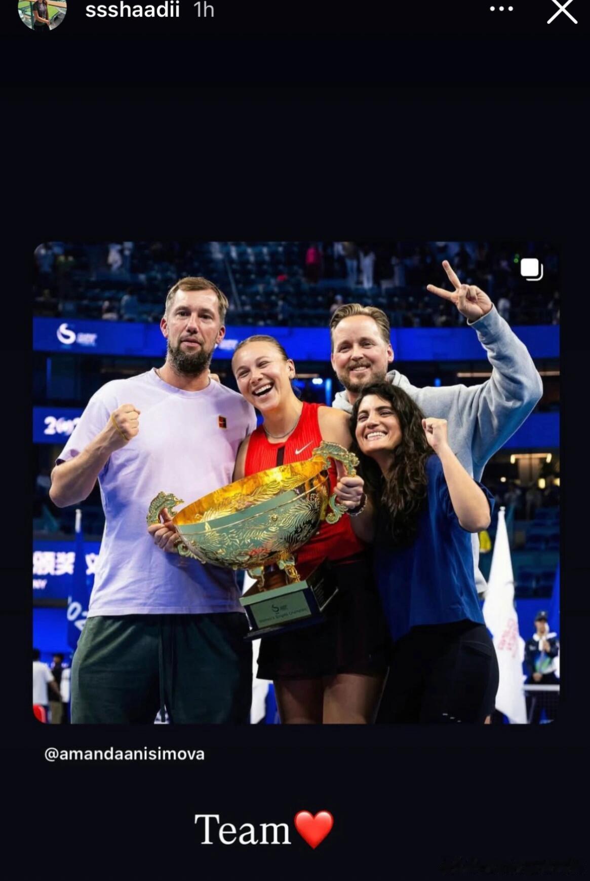 韩天遇 & 沙迪 发文祝贺中网🏆阿尼西莫娃