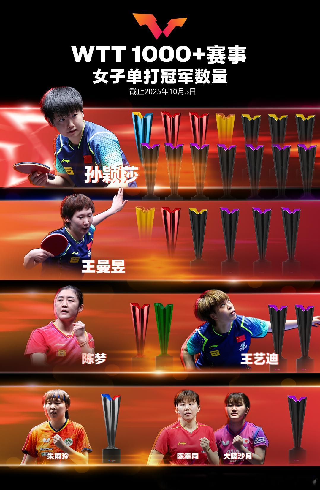 wtt中国大满贯2025WTT1000+奖杯榜更新。