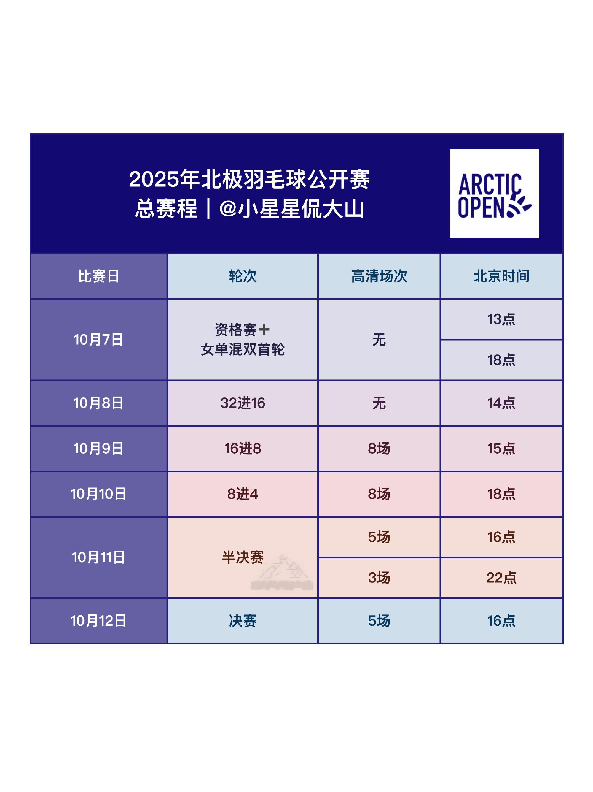 北极公开赛每日开赛时间:2025年北极羽毛球公开赛