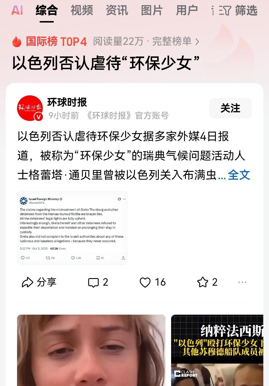果不其然,以色列还是否认了!他们矢口否认自己曾经虐待过环保少女通贝里。 之前英国
