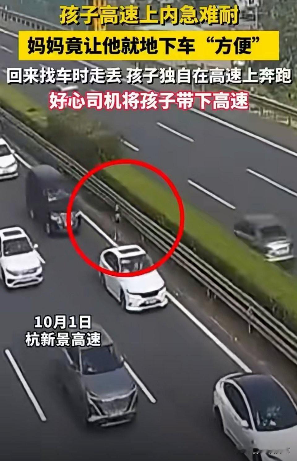 离谱到家了, 这还是亲妈吗? 高速路上一名男孩独自一人在上面奔跑…… 被交警救下后, 小男孩说的话更是让人惊吓, “他们(父母)先走了,我刚刚上了下厕所。” 真是吓人,这还是正常父母吗? 高速路上唐孩子自己下车上厕所, 还是在高速的左侧! 结果也没等孩子,让孩子一个人在路上奔跑, 国庆假期路上车那么多, 来往车辆全部都要避让,万一一个不小心呢? 后果不堪设想! 最后男孩和父母是平安重聚了, 对父母也进行了口头教育, 我觉得也太轻了吧,这种情况不值得扣个12分吗? 实在离谱