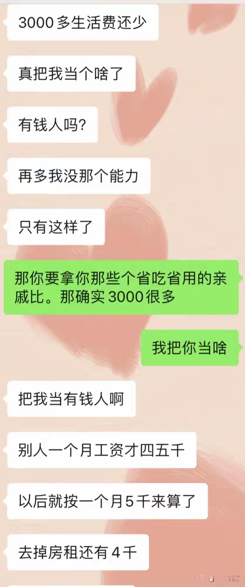买米买菜养娃,一个月问老公要3000,他说我物质