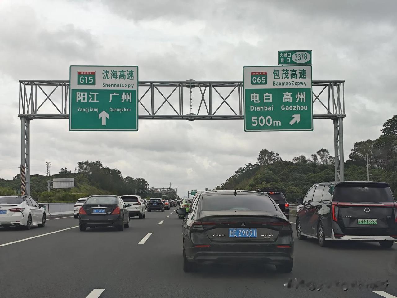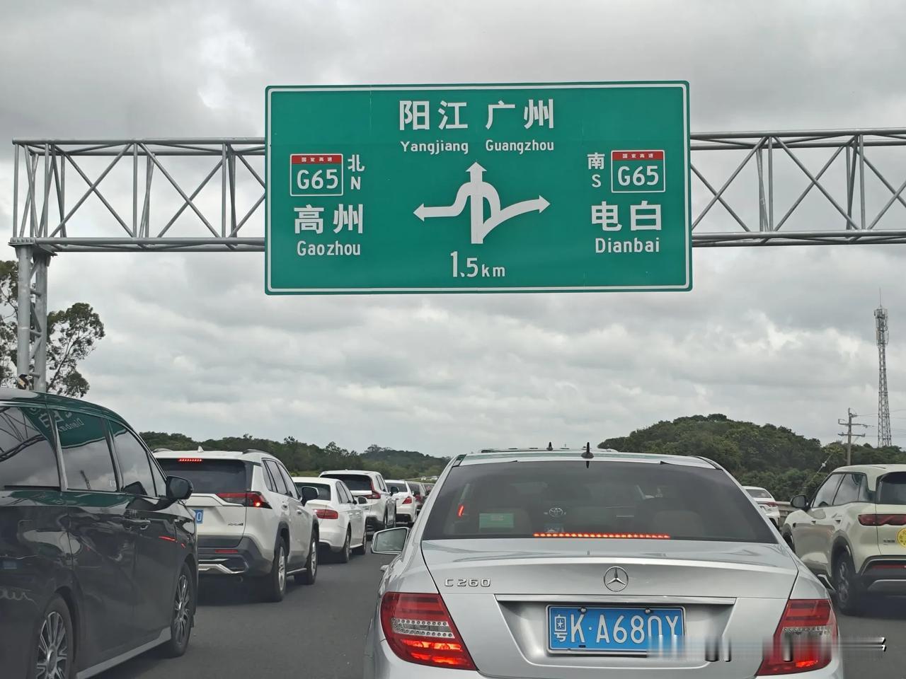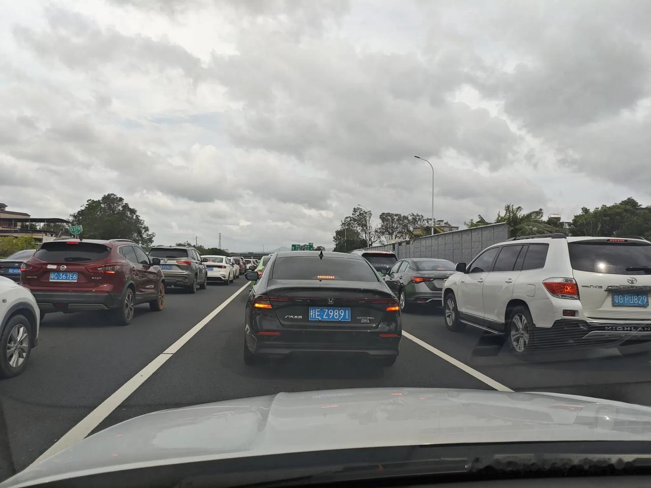 这才10月6号,沈海高速广州方向已经出现了巨大的车流。刚从茂名上的高速,就面临前方8公里的塞车流,半个小时的时间艰难的在车龙中向前挪动着。大家体验完台风都急着回去了吗?