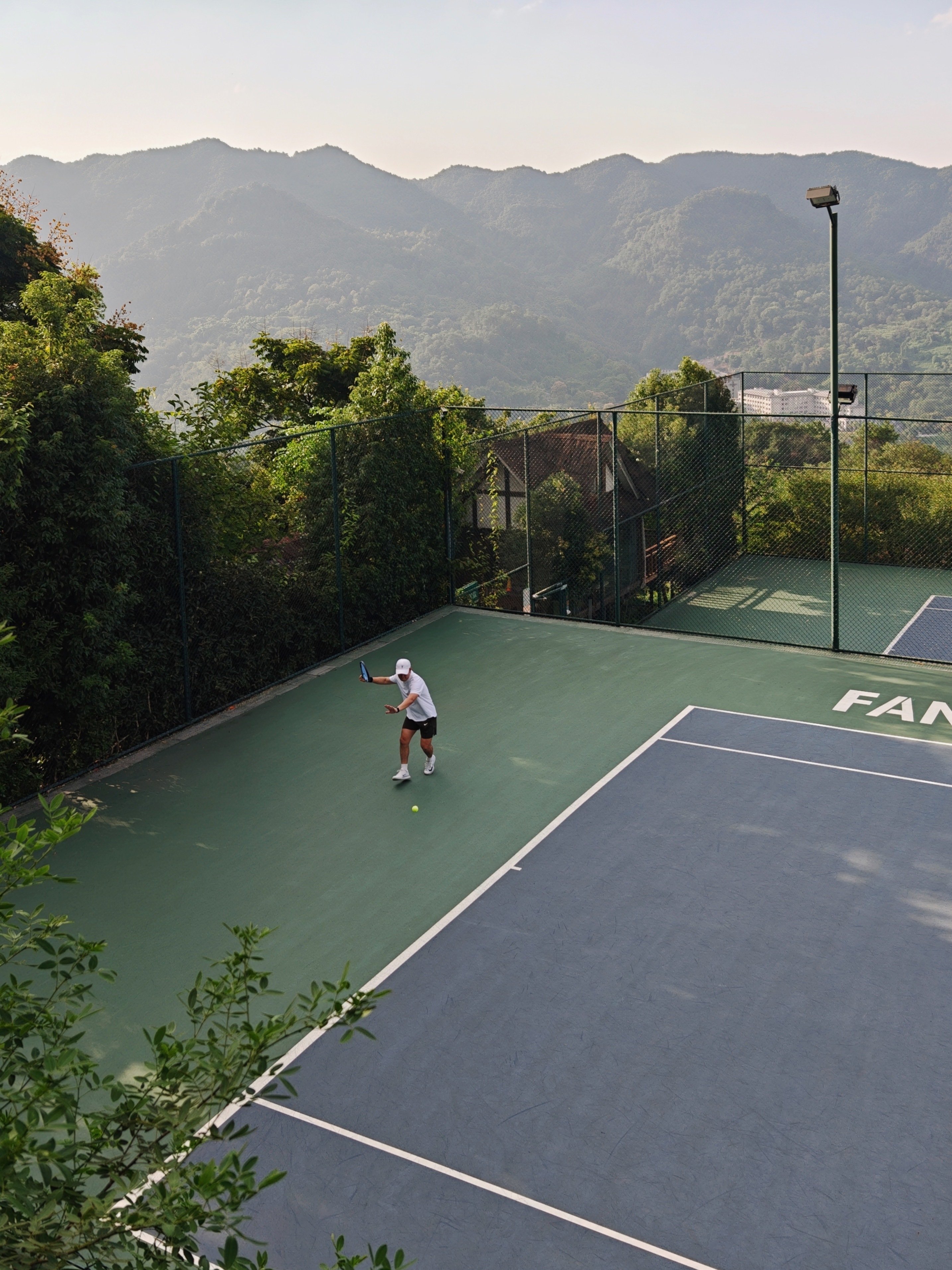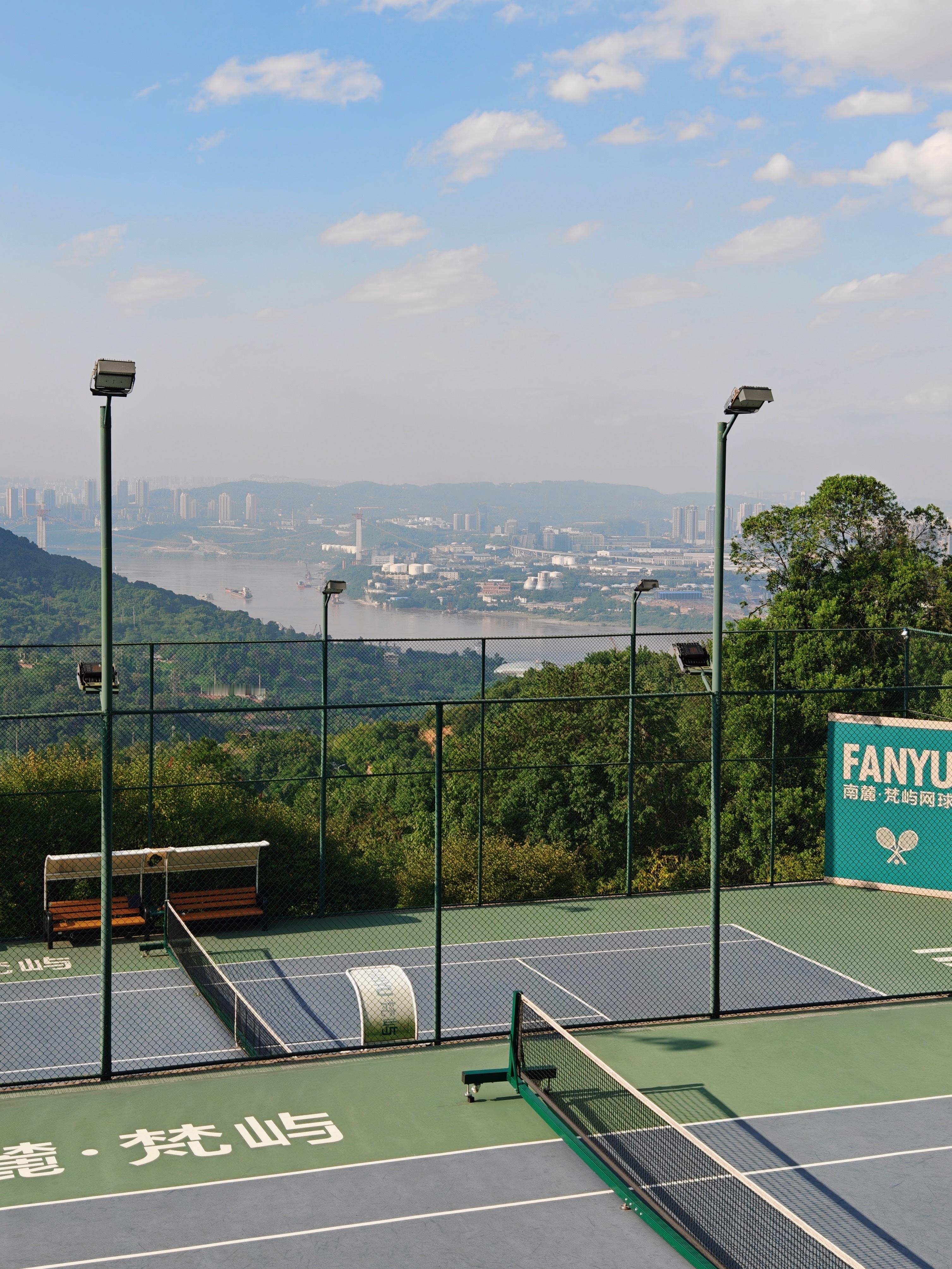在“山城”最美的网球场挥汗如雨。