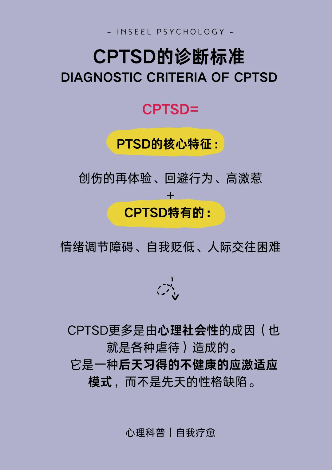 【CPTSD是心理社会性的,也就是说,它是一种后天习得的不健康应激适应障碍,而不是先天的性格缺陷】