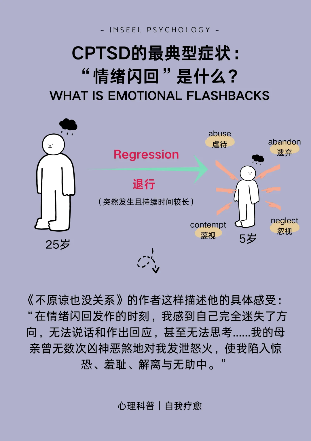 在《不原谅也没关系》这本书中,作者皮特·沃克非常详尽地描述了复杂性创伤后应激障碍(CPTSD)和创伤后应激障碍(PTSD)的不同。
