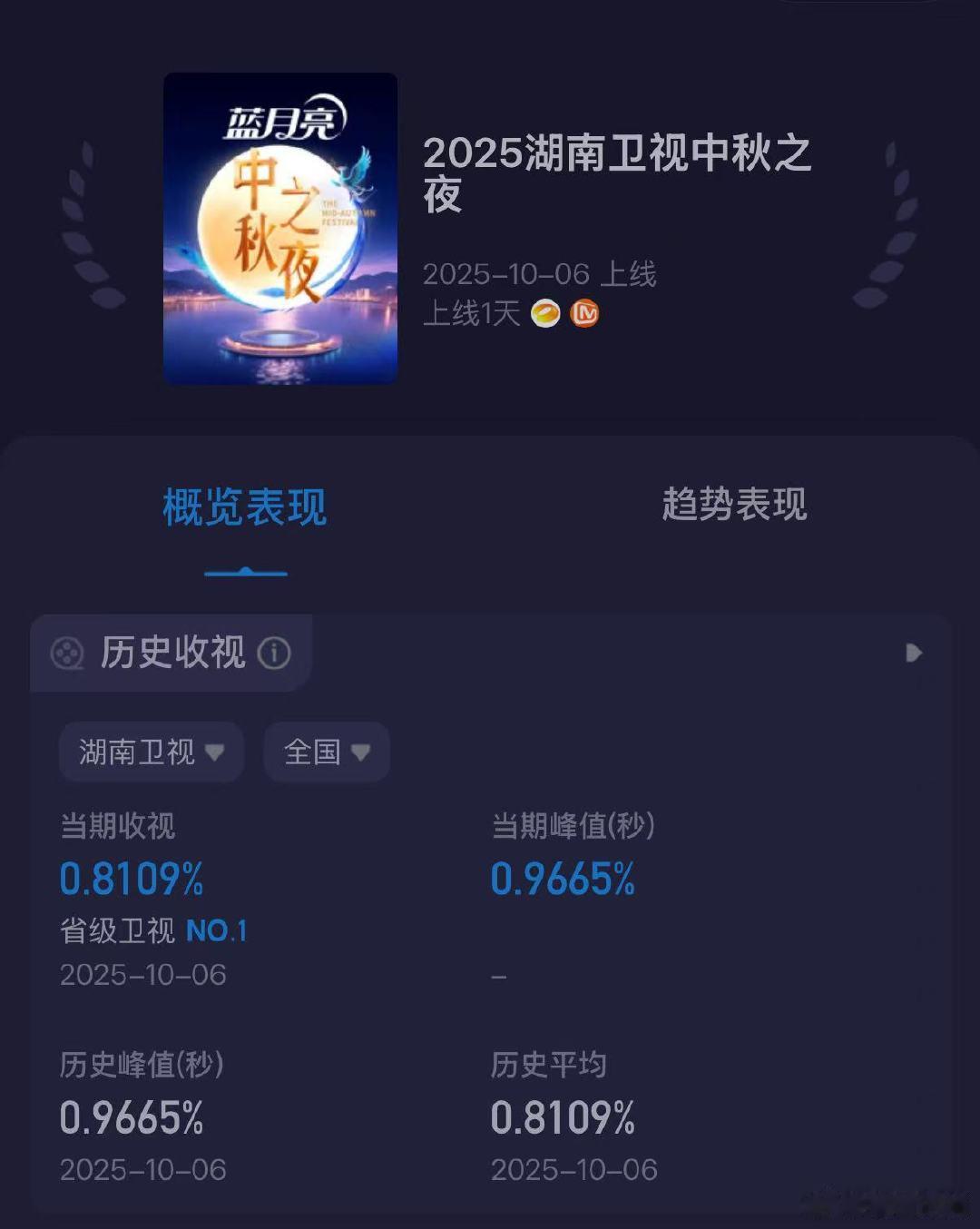 湖南卫视中秋之夜收视湖南卫视中秋之夜收视创新高 今晚的中秋之夜收视炸了!酷云峰值0.9665、平均0.8109,涨幅超57.98%,省级卫视第一稳稳的~