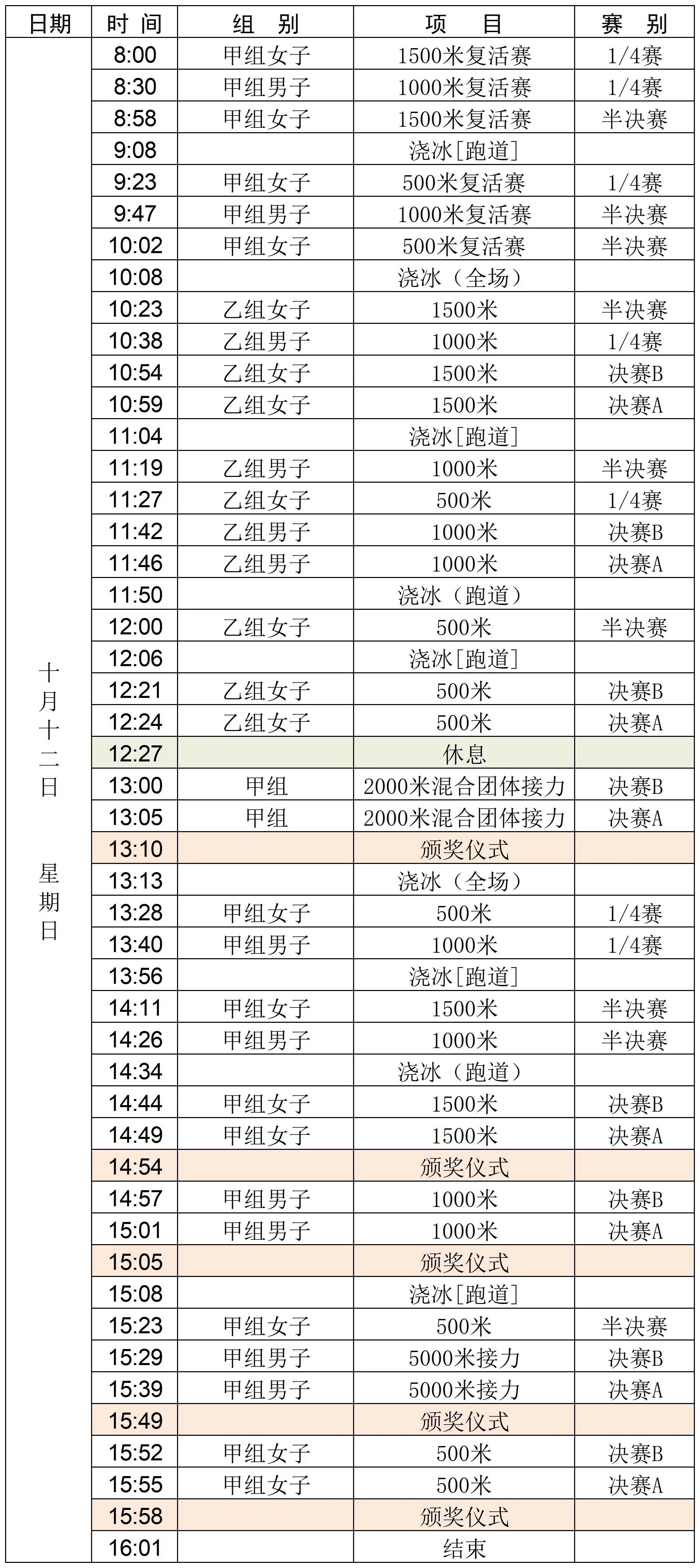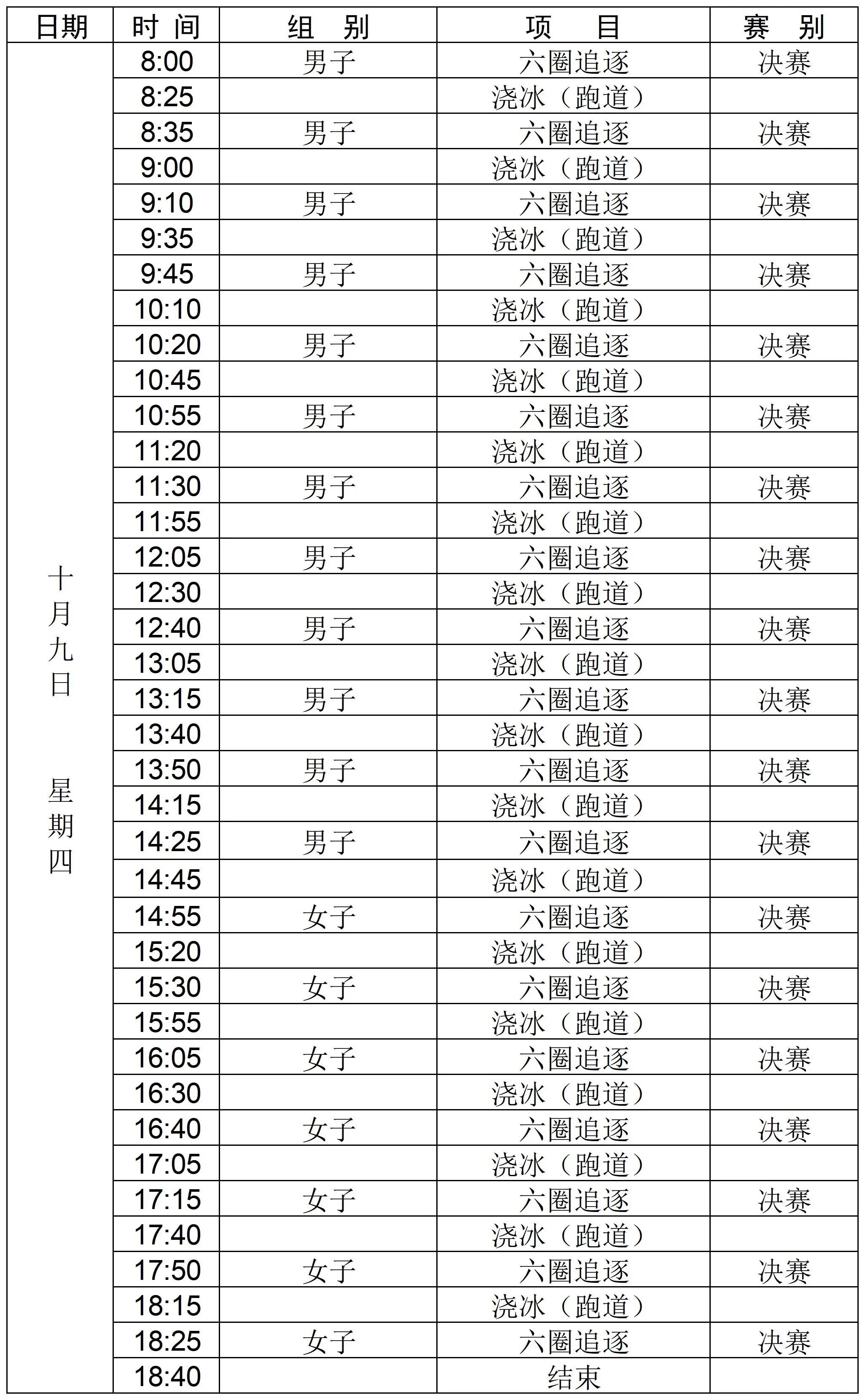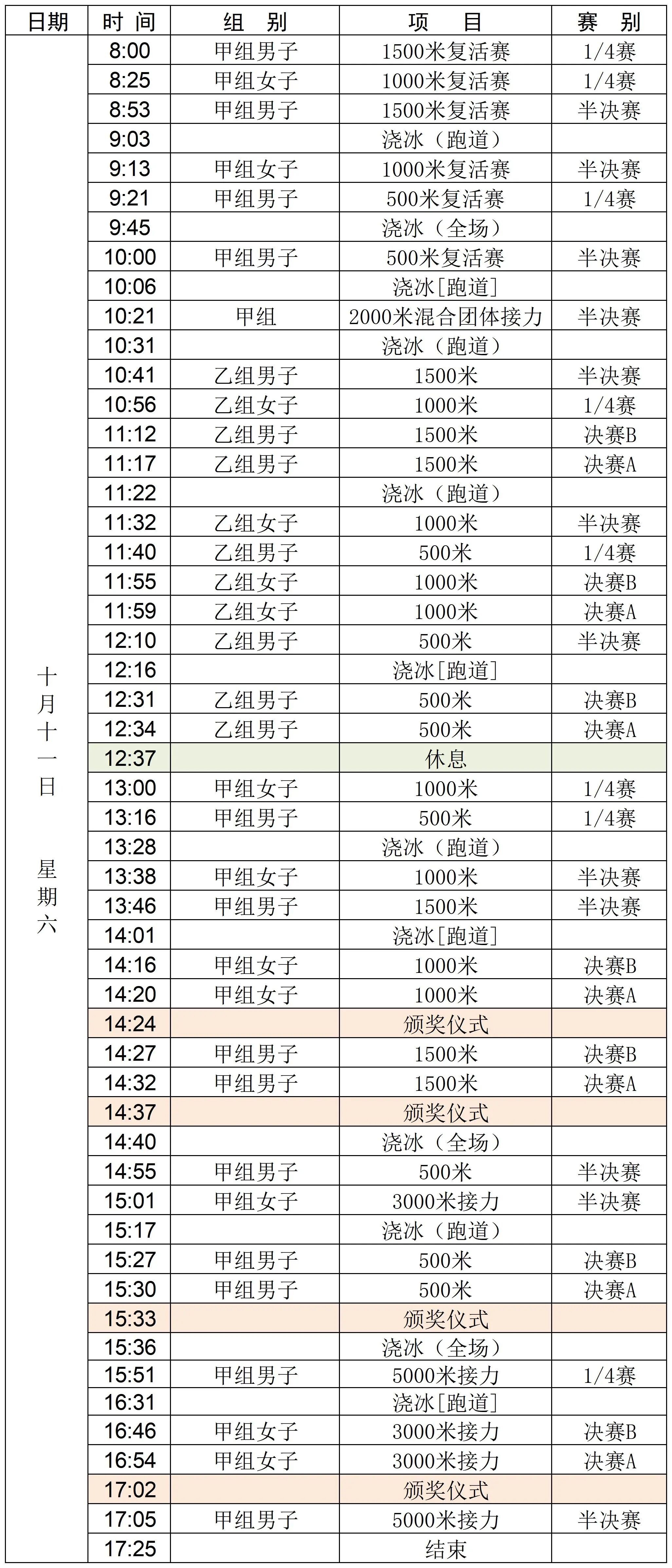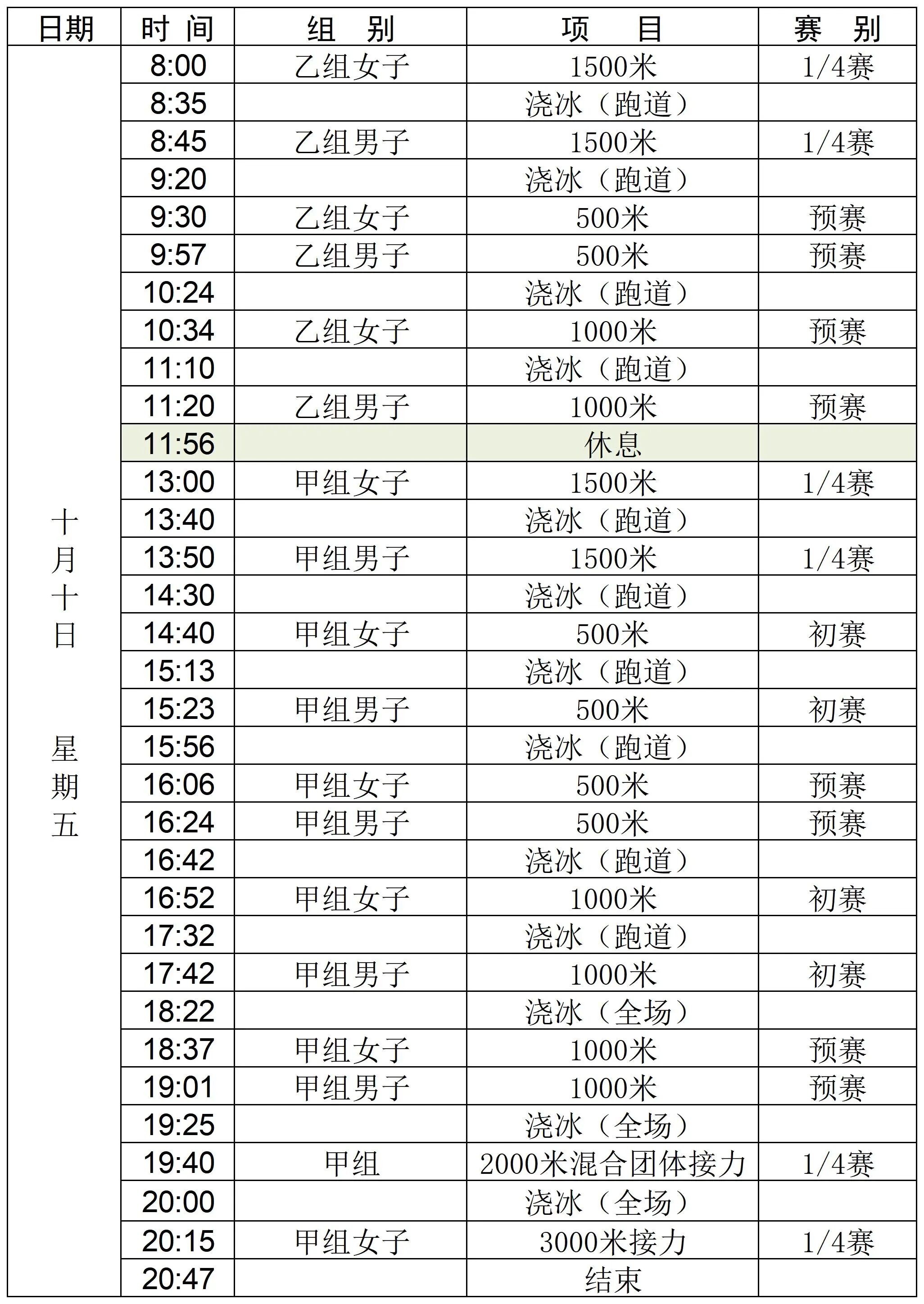 短道速滑精英联赛承德站赛程: