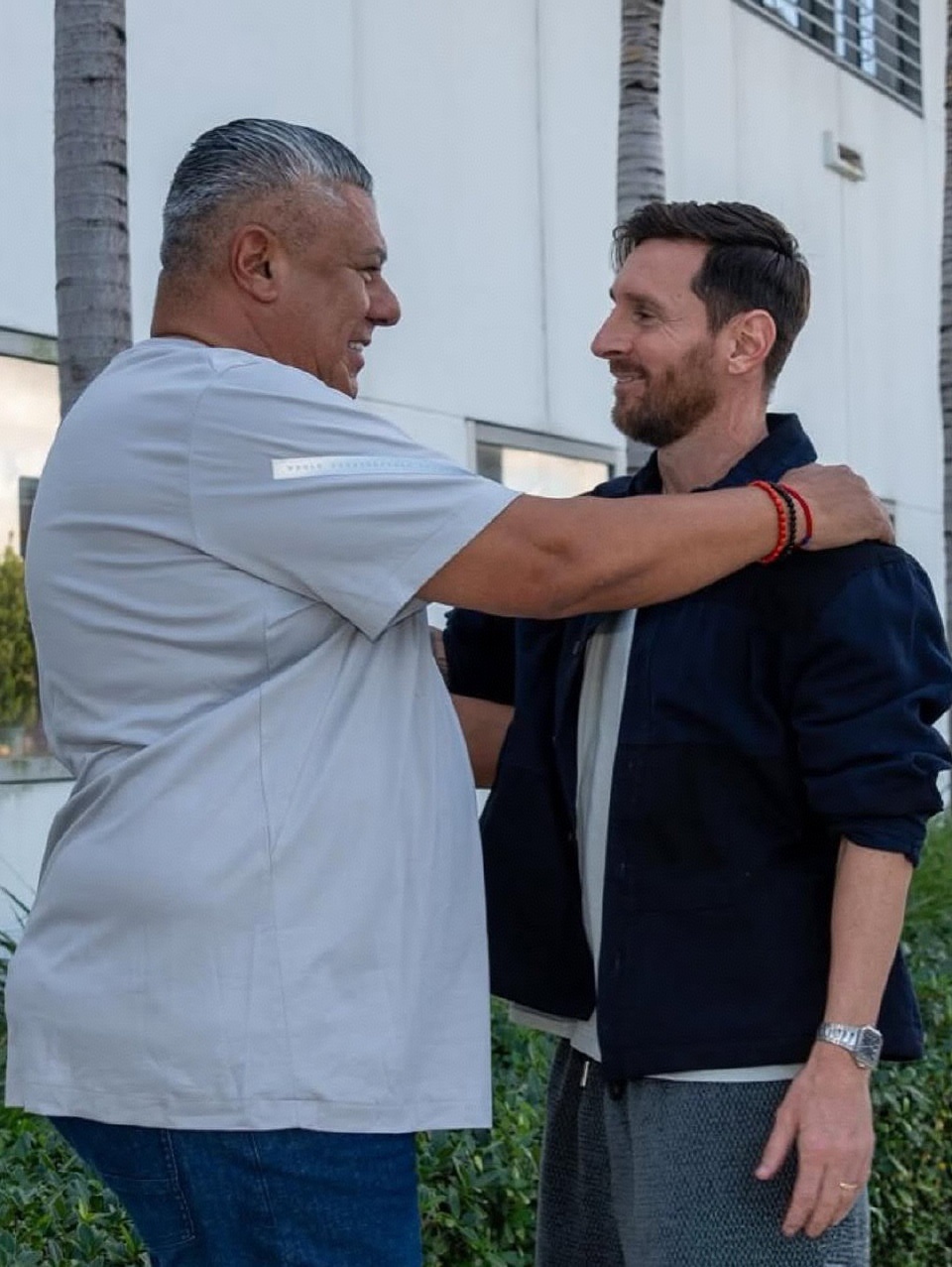 ❤虽然在阿根廷国家队~迈阿密训练基地(未备战2026世界杯准备的),足协主席塔皮亚依然在门口迎接梅西!