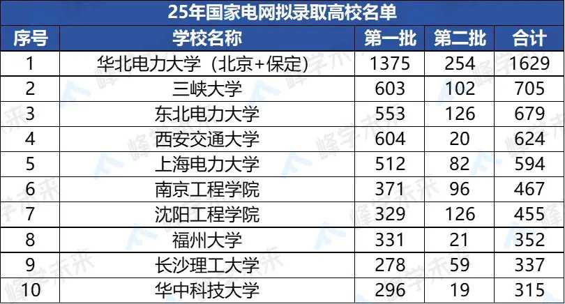 国家电网2025录用Top10高校名单一出炉,着实让人惊讶,双非院校竟有赶超985的趋势!华北电力大学断层领先,两批次共录用1629人,近三年本科毕业生整体就业率超90%,八成以上进国企。 排名前5的高校里,三峡大学、东北电力大学、上海电力大学这些双非院校赫然在列,录用人数均超500人。前10所高校中,6所既非211/985,也非双一流,却在电网录用上力压众多985。这说明选大学不能只看名头,与行业的契合度和专业实力更重要。对想进电网的考生来说,这些双非院校值得重点考虑。
