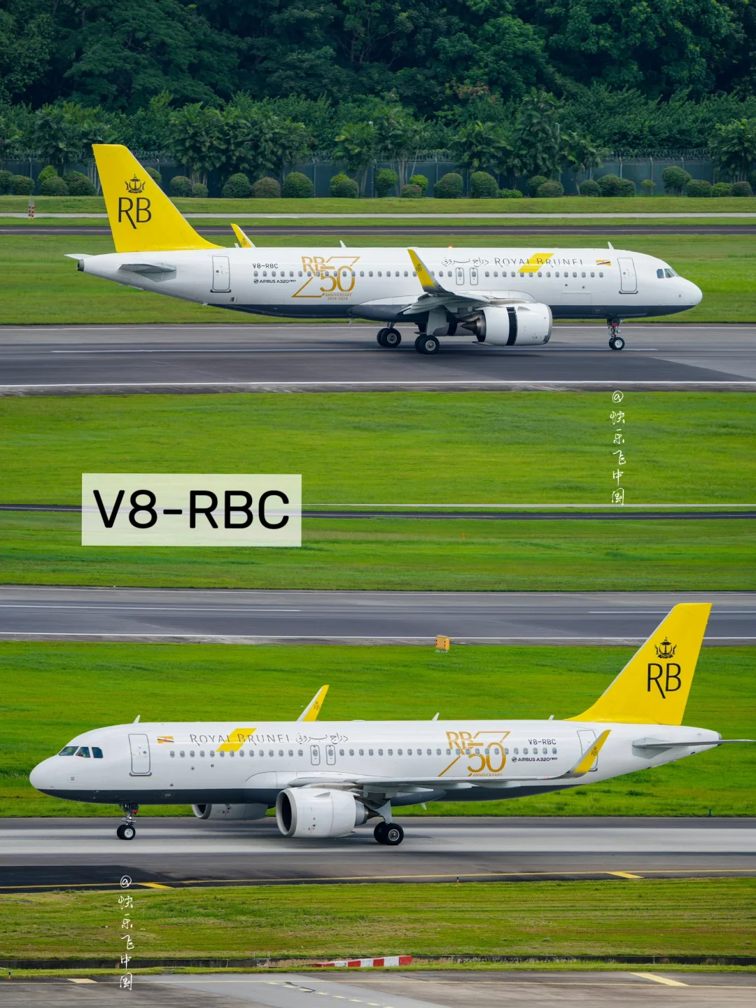 其中V8-RBD是Brunei Tourism彩绘飞机,其他都已贴上了文莱航空50周年的纪念贴纸