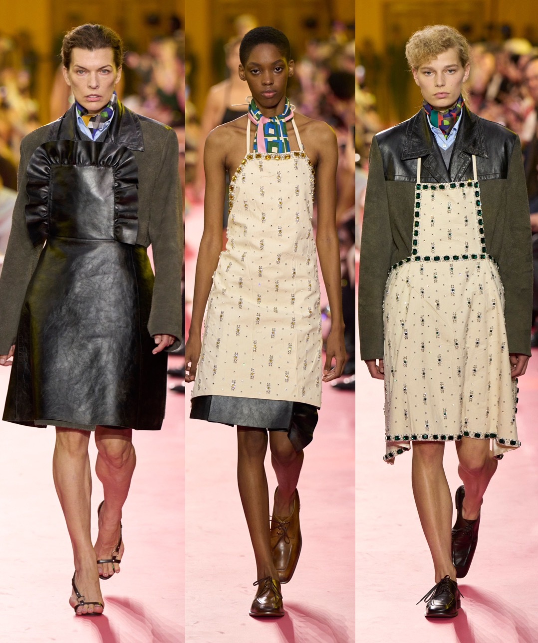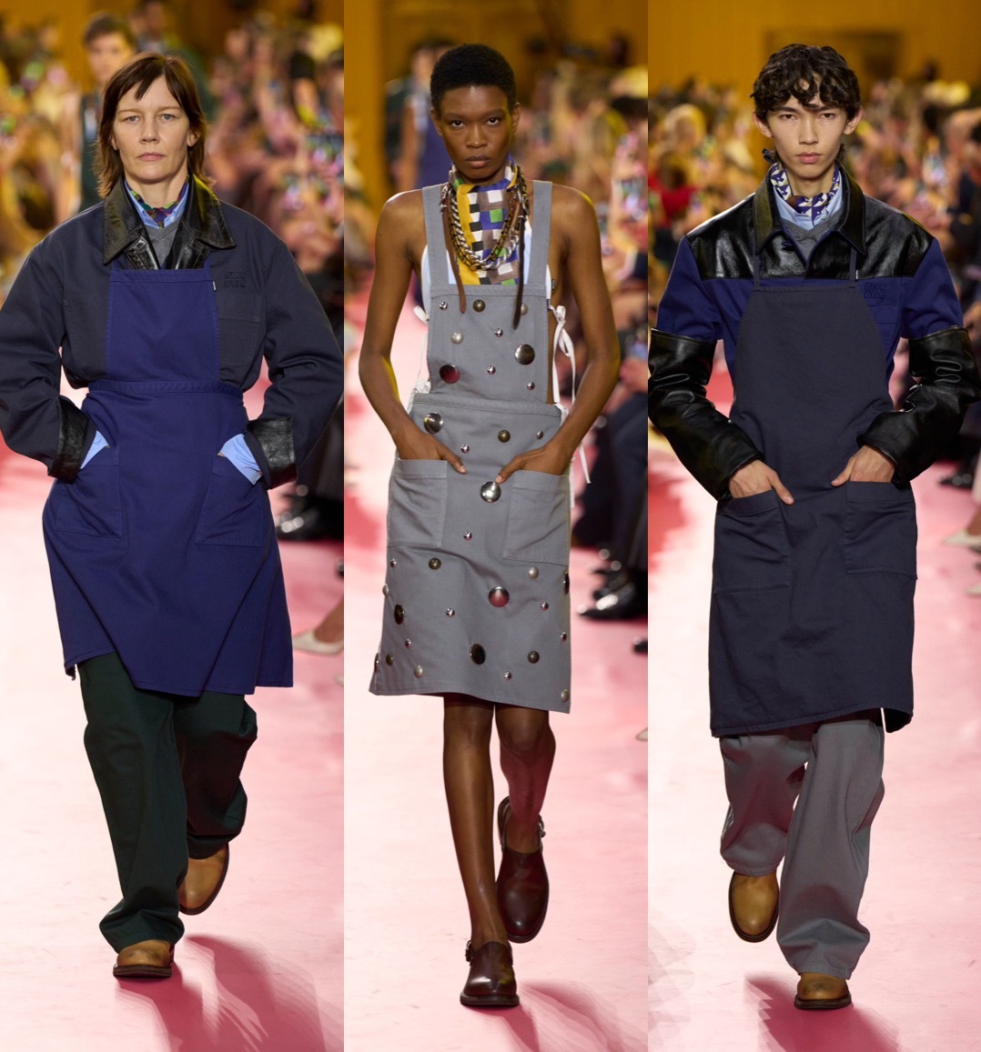 MIU MIU 2026春夏系列时装秀,向来清新精致的Miu Miu本季带来兼具艺术表达的一季,许多以“围裙”为主题的创作非常吸睛,家务、工业、护理、艺术创作,品牌以工作日常展现女性的独立与韧性,其实还蛮有诗意的。围裙背后依然还是追求美好的Miu Miu女性,多样的材质和色彩,浪漫又不失精巧细节,同时也有不少具备力量感的时装选择,总体依然是非常好搭配的。
