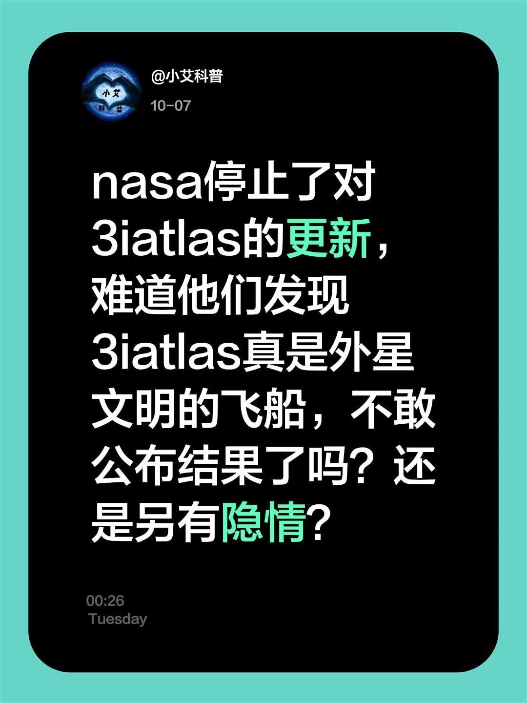 我评论了的作品:nasa停止了对3iatlas的更新,难道他们发现...