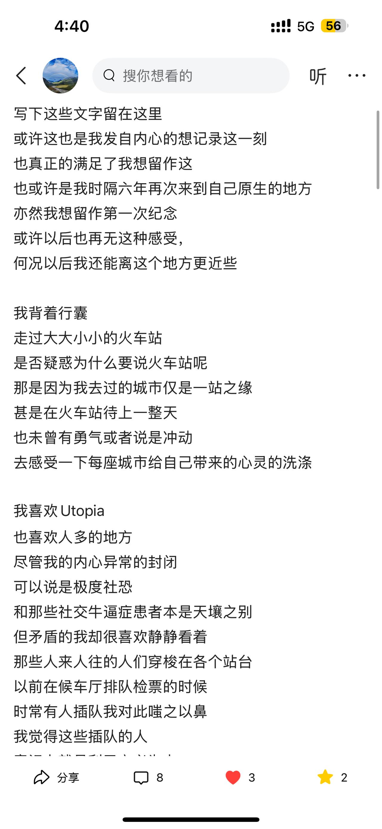 自缚文学是一种让人费解的事情 自以为写的很真实富有情感的文章 阅读量少之又少 能找到一个真正读得懂你的人 也是少之又少 人终其一生 无非在追求三样东西 归属感 认同感 成就感 真正能达到读者的共鸣 难上加难 每个人的生活环境 价值观 人生观 世界观 都是截然不同 反而那些口水文学 却能在最短的时间内 带来共鸣 这边是真实的文学