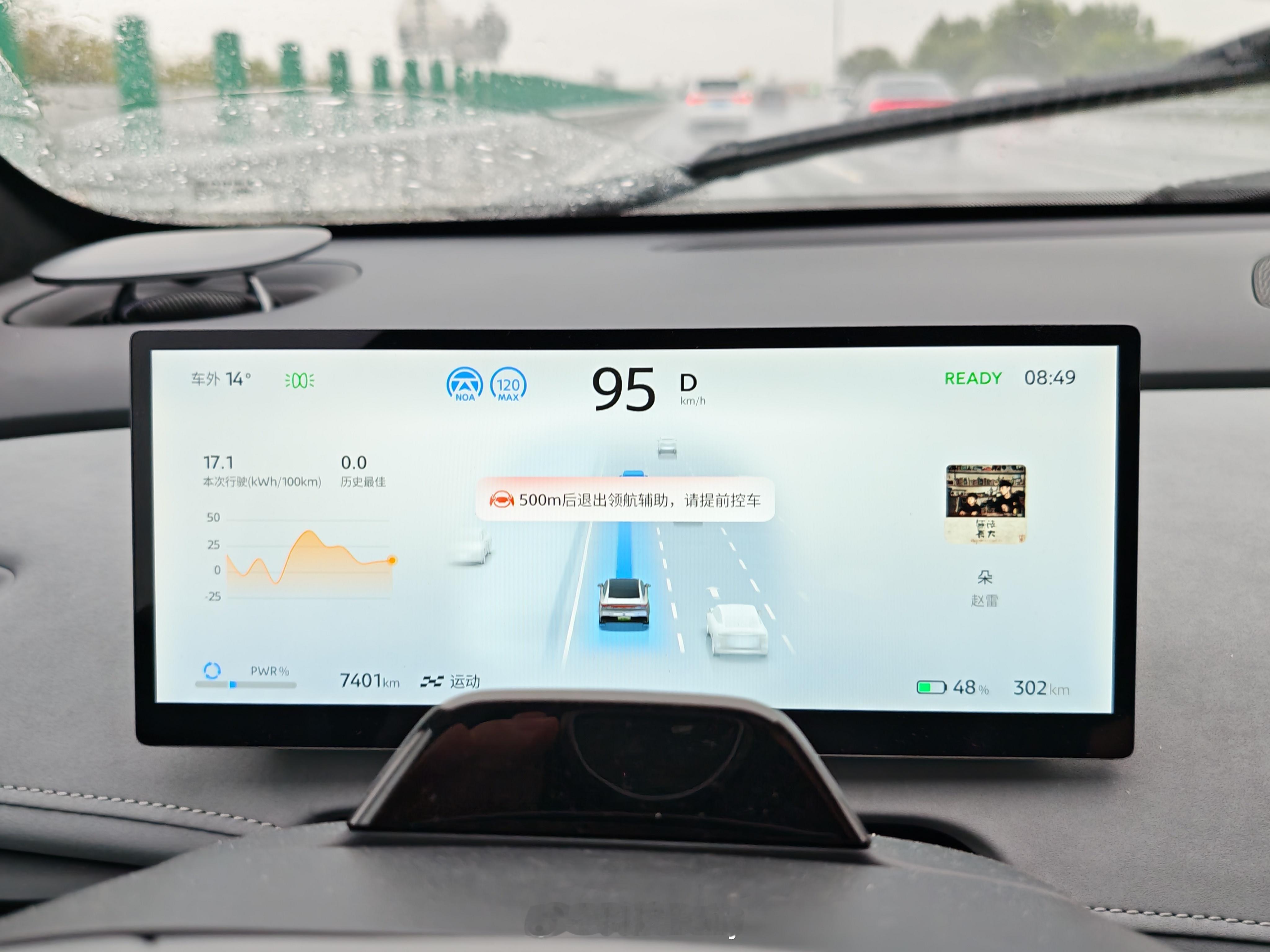 当然偶尔想要自驾的时候也能和N7打个配合,人车共驾做的很棒,退出辅助驾驶也会有明显提示,在到达收费站的前1000米、500米也会提醒接管,整个辅助驾驶交互逻辑做的非常好。