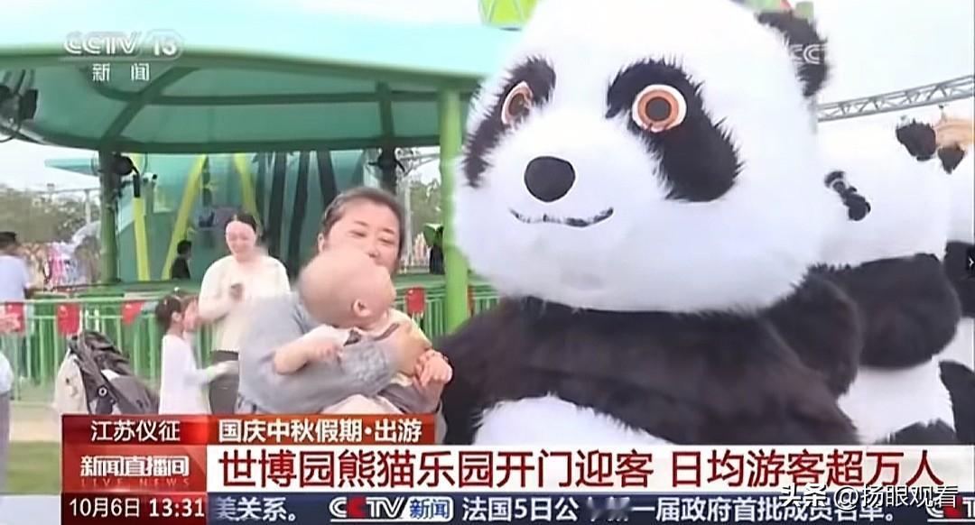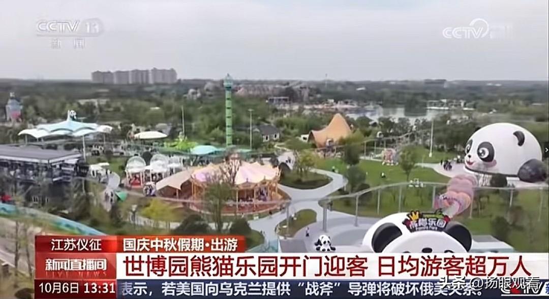 国庆中秋假期,位于江苏仪征的扬州世博园熊猫乐园正式开园即爆火,日均游客超万人,1