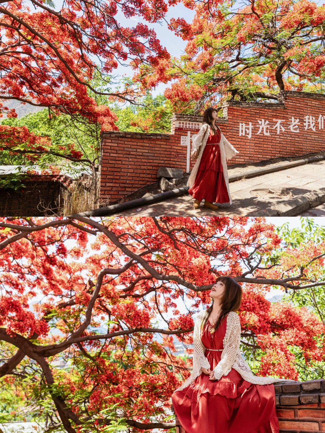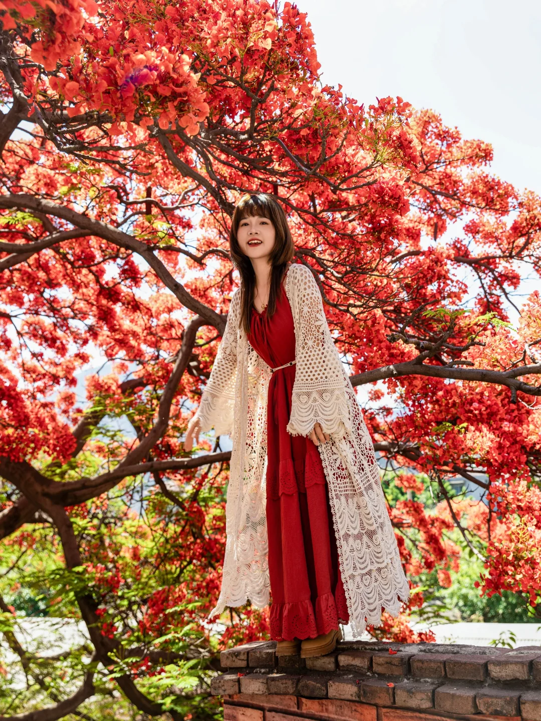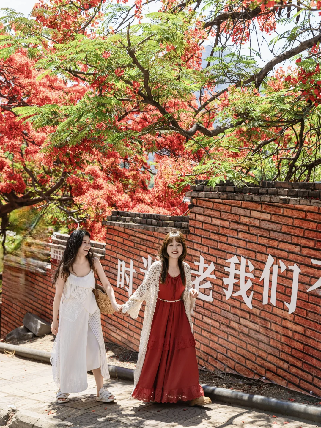 街道两旁都是凤凰树,火红一片,随手拍都是无人花海大片。