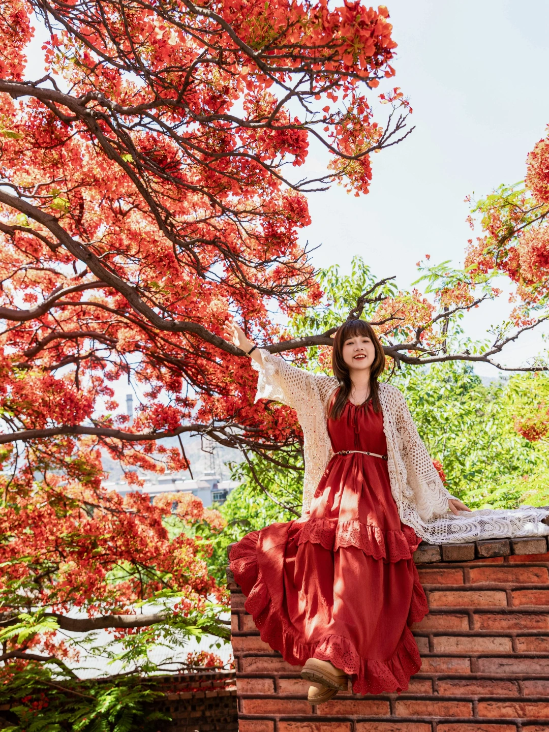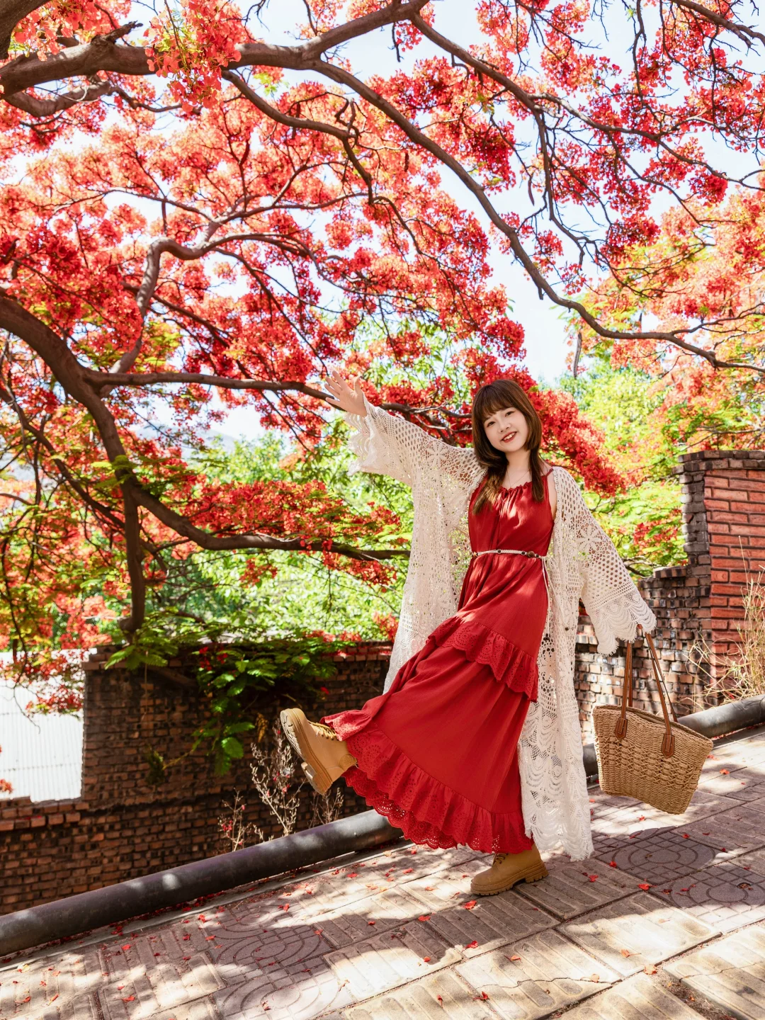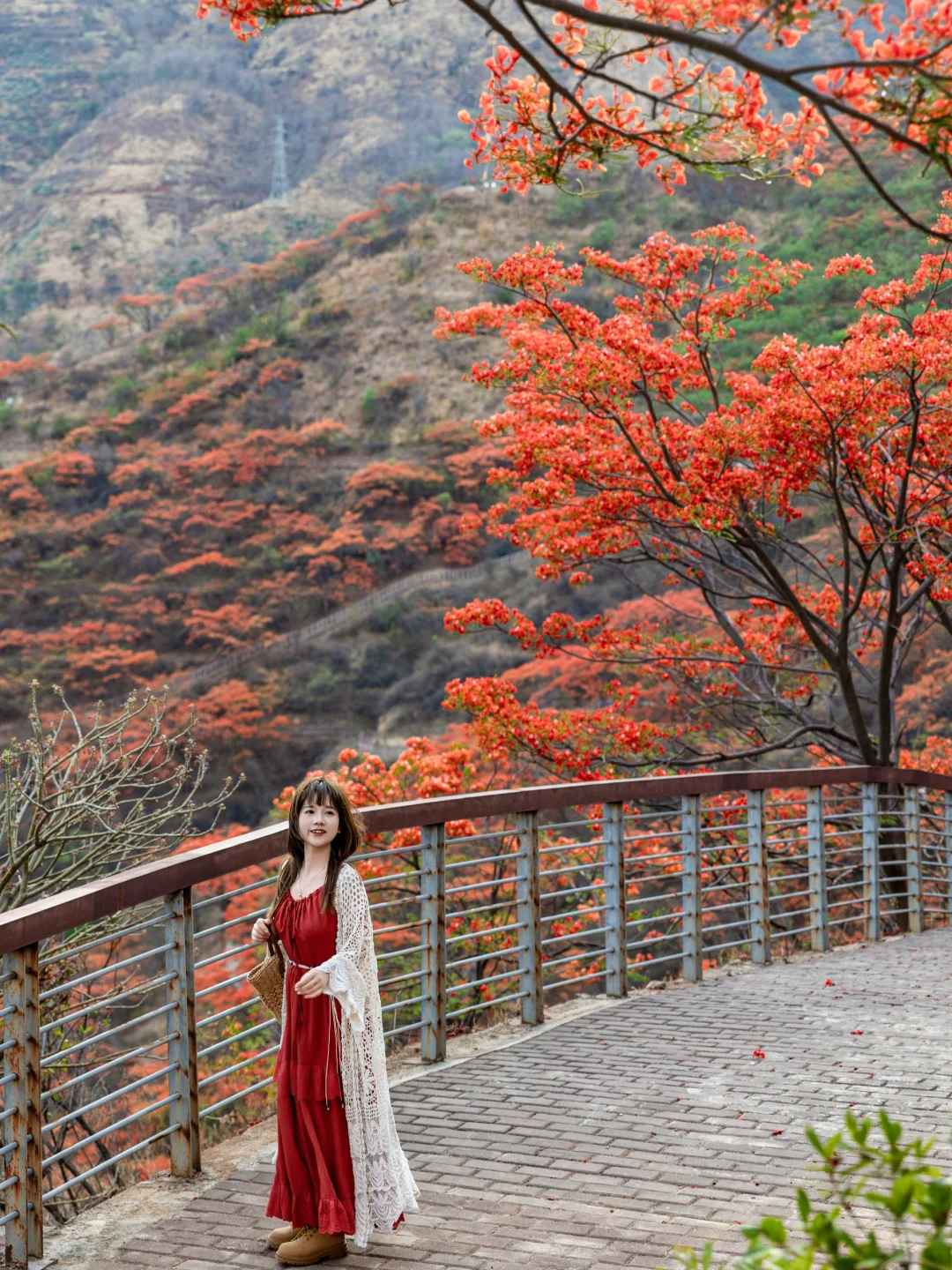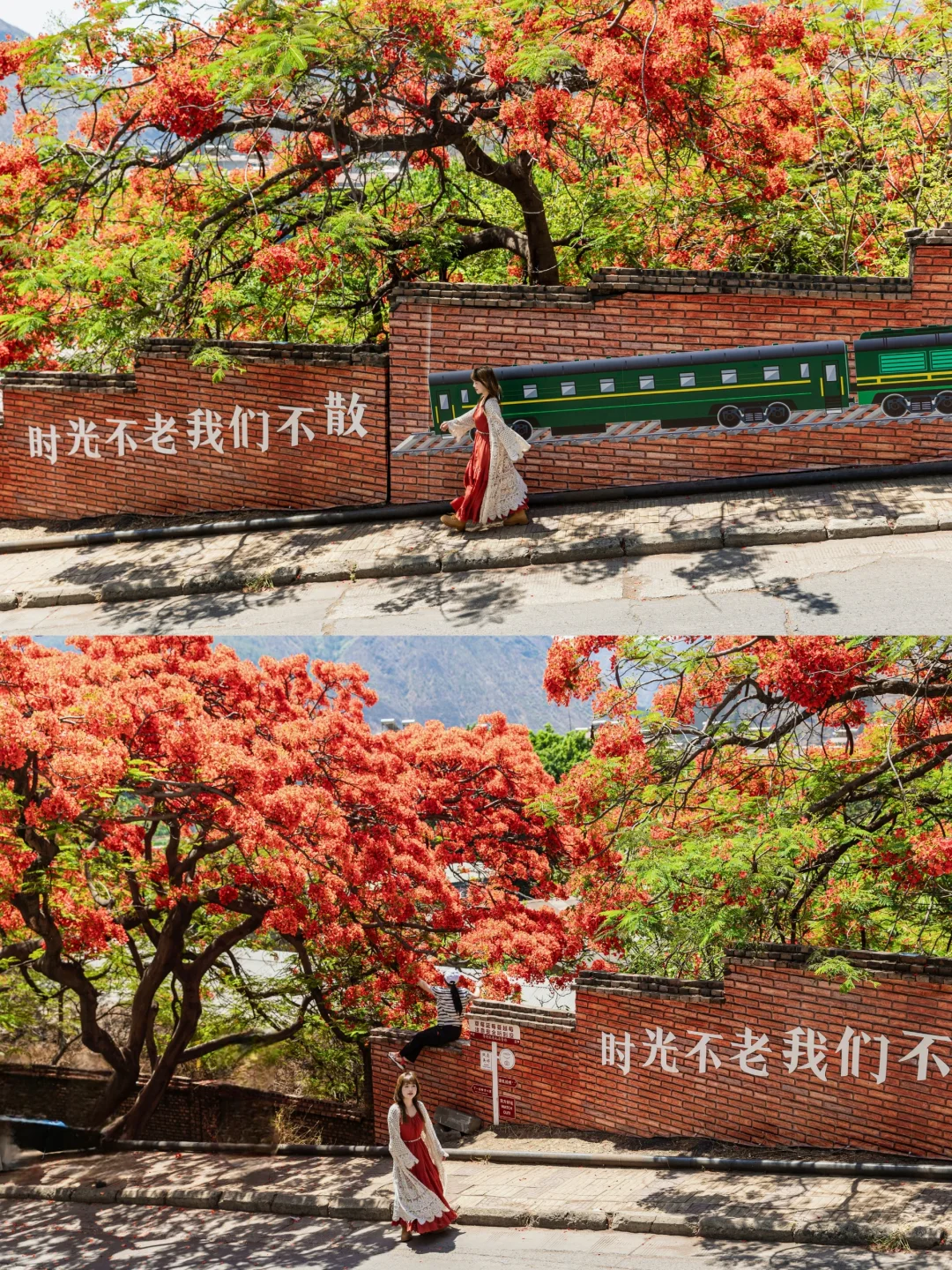 街道两旁都是凤凰树,火红一片,随手拍都是无人花海大片。