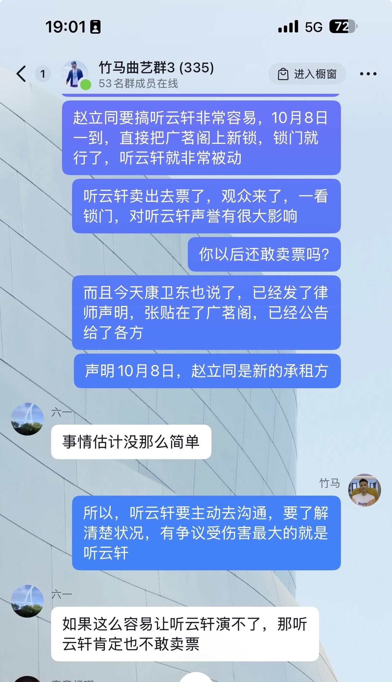 赵立同接手广茗阁大局已定,听云轩输给了自己的善良和大意。总以为自己手上还有两年合同,园方会遵守协议,殊不知你面对的是一群不讲规则的失信人员,你有合同有什么用?人家直接把签约的那个抬头给注销了;总以为赵立同只是在蹭流量,其实人家老早就在做局了,目的就是赶走听云轩。 一切回到合同上来,不要直播卖惨。 号称养了一个法务部的团队。双方签合同前,合同不给法务部过一遍吗?没发现问题? 出现问题就是合同出现问题。 其余不要东拉西扯! 成年人要体面,不想体面有的是人帮你体面!! 从潘的直播间说还有两年合约。 其他附加条款有没有? 有没有终止合同选项?这都以合同为主。 既然主办方敢把场地租给其他人,那就不存在还有两年的说法。那就没有违约行为。为什么,因为主办方都不是傻子。弄出个一地两租!搞不好是合同诈骗。 最好的公关就是沉默,宣布合约到期。场地另寻! 说一千道一万,还是自己的实力不如人。线上直播带货,把相声当成副业。不好好研究相声,如此下去,后果非常严重。 对此大家怎么看?