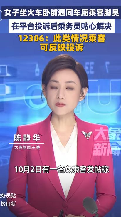 [中国赞]10月2日,一女子乘坐火车从齐齐哈尔去南京,结果刚一上车她就傻眼了,同车厢的一位大哥脚臭的她根本没法忍,她直接在软件上投诉,没过一会就来了一位男乘务员来解决,网友:原来乘务员还能这么服务! (信源:极目新闻——女子坐火车卧铺遇同车厢乘客脚臭,在平台投诉后乘务员随即来解决,12306回应) 10 月 2 日,张女士在齐齐哈尔开往南京的硬卧列车上遭遇的窘境,成了无数网友的共同记忆。这趟长达 30 多小时的旅程,本应是窗外风景与旅途休憩的交织,却被同车厢男乘客脱鞋后弥漫的酸臭气搅得面目全非。 作为常年往返两地的通勤族,张女士早已备齐应对长途旅程的装备 —— 密封性极好的饭盒里装着家人准备的热菜,消毒湿巾与眼罩整齐排列在小桌板上。 但当那股混合着汗味与闷味的气息钻进鼻腔时,她握着筷子的手停在了半空,胃里一阵翻涌。目光扫过斜对面铺位那位正放松伸展的男乘客,她张了张嘴又闭上,“毕竟要共处一天多,直接说太伤和气”。 纠结半小时后,张女士点开铁路 APP,指尖快速敲下车厢号与铺位号,没有过激表述,只客观说明 “异味影响就餐休息”。让她意外的是,投诉提交不到十分钟,一位穿制服的男乘务员已出现在车厢门口,手里还攥着个密封袋。 乘务员的处理堪称 “教科书级别”。他没有刻意扫视寻找,而是自然地沿着过道巡视,走到男乘客铺位旁时放缓脚步,弯腰用近乎聊天的语气提议将鞋子放到连接处的通风架,又顺手扯过被子轻拍对方小腿:“盖着点更暖和,也能少点味道。” 没有半句指责,却让男乘客立刻坐起身,红着脸把鞋塞进了乘务员递来的密封袋。 转身走向张女士时,乘务员从口袋里掏出一次性口罩,指尖还带着刚从备品柜取出的凉意。“附近可能还残留点味道,您先对付下。” 见张女士点头致谢,他又补充道 “下铺刚好有空位,通风好很多,我帮您搬行李”,即便被客气拒绝,仍坚持帮她把行李箱换到了更靠过道的铺位。 当乘务员的身影消失在车厢连接处时,男乘客主动走到张女士铺位旁致歉,反复说着 “没注意影响大家了”。这一幕被邻铺乘客拍下发到网上,很快引发数万点赞,评论区瞬间变成 “卧铺辛酸史交流会”。 有人晒出自己曾因脚臭坐过道到天亮的经历,有人分享 “风油精对抗脚臭” 的偏方,更有人感慨 “原来投诉不用撕破脸”。 这让人想起方庄街道化解楼道农药异味的案例,工作人员同样没有直接指责泼洒农药的住户,而是先体谅其灭鼠的急切,再说明公共安全风险,最终用专业清洁赢得双方认可。 无论是列车车厢还是居民楼道,这些场景都在印证同一个道理:公共空间的矛盾从来不是 “非黑即白”,共情式沟通远比强硬干预更有效。 事件发酵后,12306 客服回应称,乘客遇类似问题可通过三种渠道反馈:直接联系乘务员、扫描座椅扶手 “畅行码”、拨打 24 小时热线,工作人员会根据情况协调处理。但网友更关注的,是如何让 “张女士式的幸运” 成为常态。 更值得深思的是事件背后的相处哲学。在高铁时速不断刷新的今天,我们早已习惯了高效便捷的出行,但公共空间的文明演进仍需慢慢来。 那位男乘客的道歉、张女士的克制、乘务员的体贴,共同构成了一次完美的 “社会实验”—— 它证明,即便在拥挤的卧铺车厢里,尊重与理解也能找到生长的空间。 当列车缓缓驶入南京站,张女士拎着行李下车时,特意回头望了眼车厢门口的乘务员。阳光透过车窗洒在他的肩章上,也照亮了那句印在服务卡上的话:“最好的服务,是让每个乘客都体面地抵达。” 而这,或许就是对 “好好沟通能解决大部分问题” 的最佳注解。