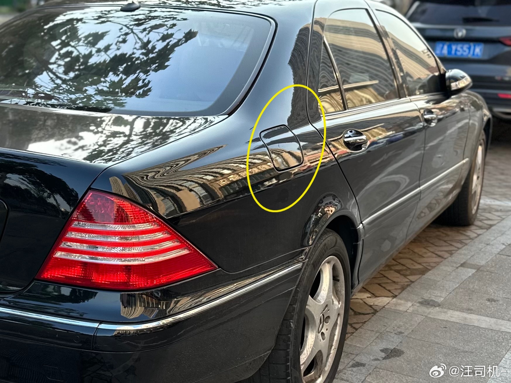 w220蝴蝶奔的加油口横跨两个曲面,在造型上算个败笔,但背后的原因却非常高级。