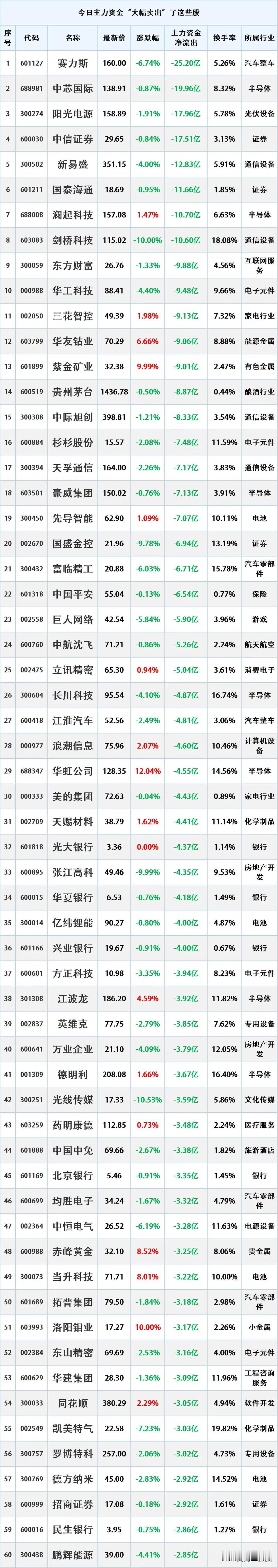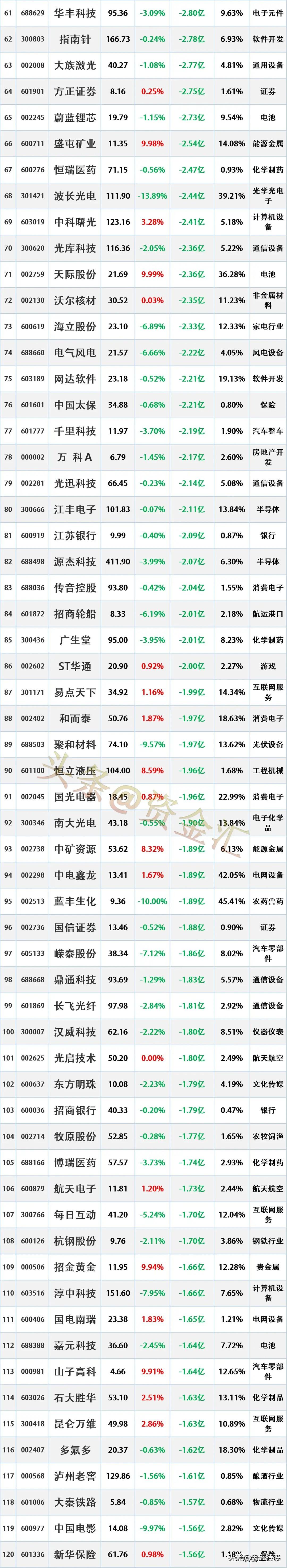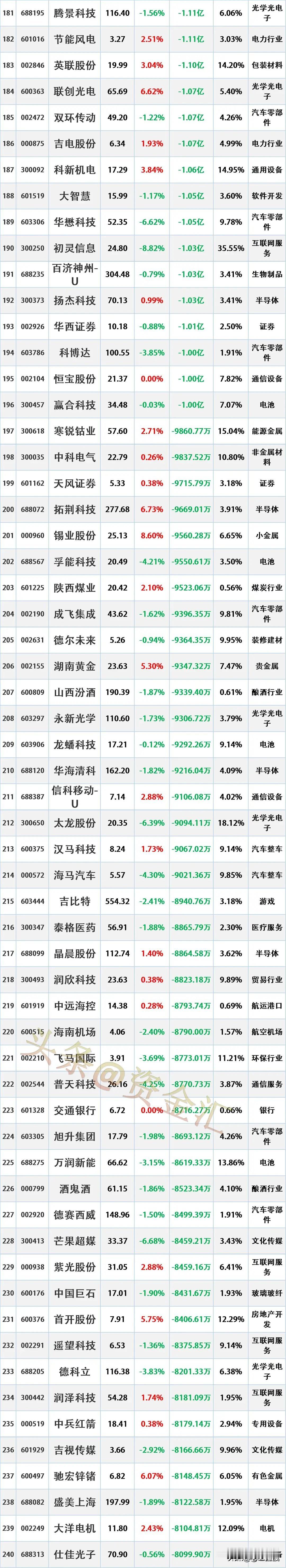 主力资金尾盘出逃,10月9日主力资金大幅流出的股票名单。 资金流出是指在一定时