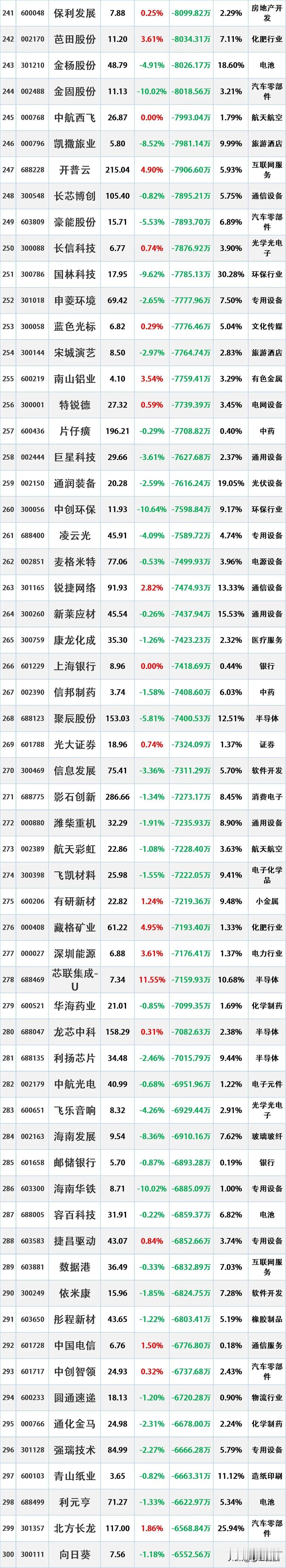 主力资金尾盘出逃,10月9日主力资金大幅流出的股票名单。 资金流出是指在一定时期内(如一天、一周等),主动卖出某只股票的资金量大于主动买入该股票的资金量。主动卖出是指投资者以买方的报价直接成交,显示出投资者对该股票的消极持有或抛售意愿。