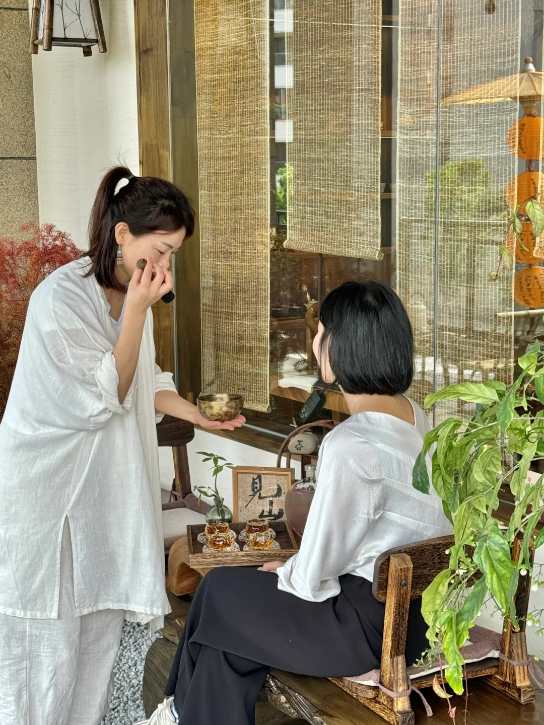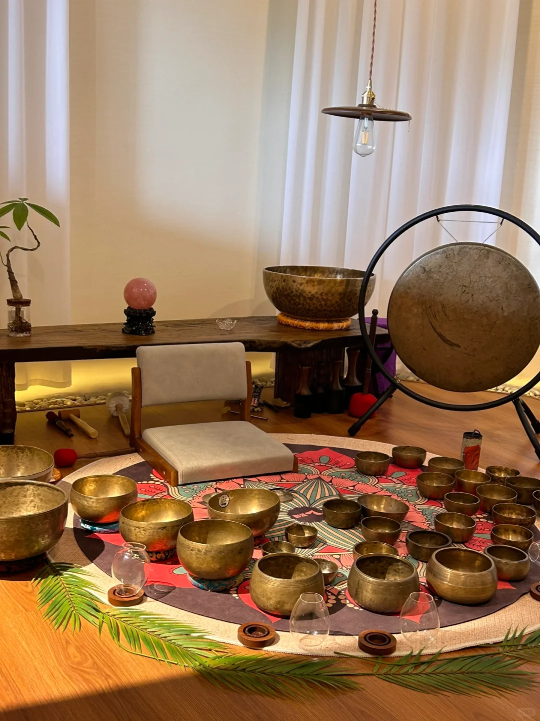 大隐隐于市的一家氛围感茶室🍵没想到还有颂钵,真的可以安静的呆一下午…偶尔来喝喝茶感受一下自然的清净惬意!!没人打扰真的太舒服了🥹🥹可以选择的茶的品类也很多,推荐围炉冰茶~貌美又好喝!甜品点心都是手工做的,据说灵感是国风水墨画。老板会定期举办免费的沉浸式颂钵体验和读书会,是非常难得的一家用心经营环境和文化的茶馆… 📍记住这个店名:一杯会颂钵的茶。
