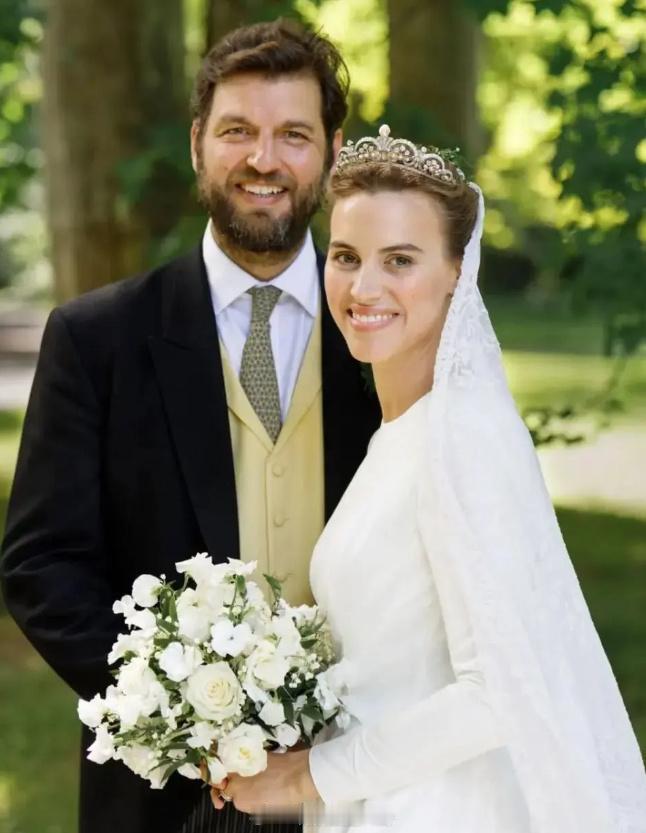 属于德国塞恩-维特根斯坦-塞恩族长夫人加布里拉的珍珠钻石王冠,设计略显现代,可能是上世纪五六十年代的作品。加布里拉从来自TnT的亲妈海伦那继承而来。 新千年后成为了她走教堂的儿媳妇专用王冠,分别是长媳普里西拉(2003)、三媳菲莉帕(2011)、第二任次媳阿米娜(2019)和四媳由里奈(美日混血儿)(2025) 王冠体量不大但设计十分精致秀气,很适合做新娘王冠,搭配头纱和小白花做装饰看着很浪漫