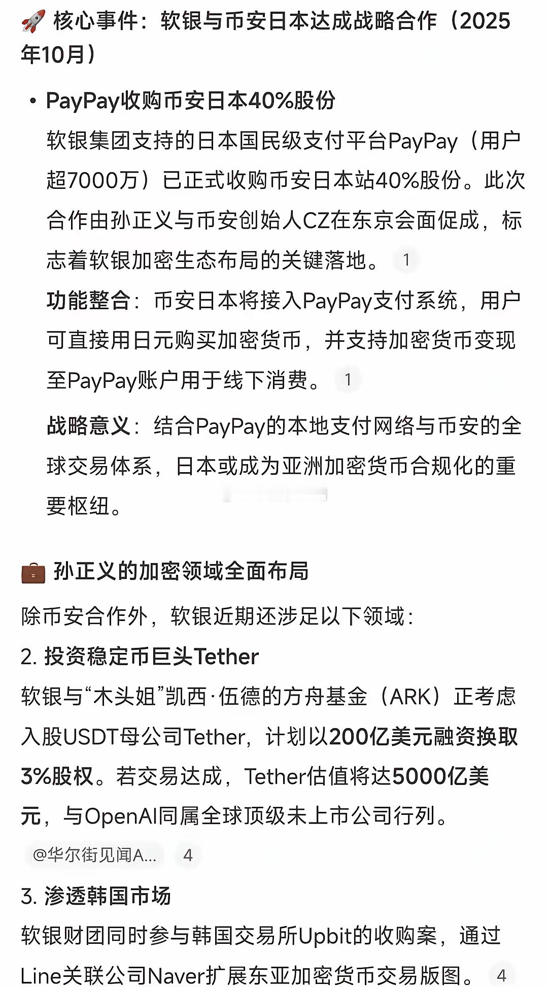 软银集团收购币安日本站40%股份,将扩大bnb的使用范围。同时,有意收购usdt母公司股份。