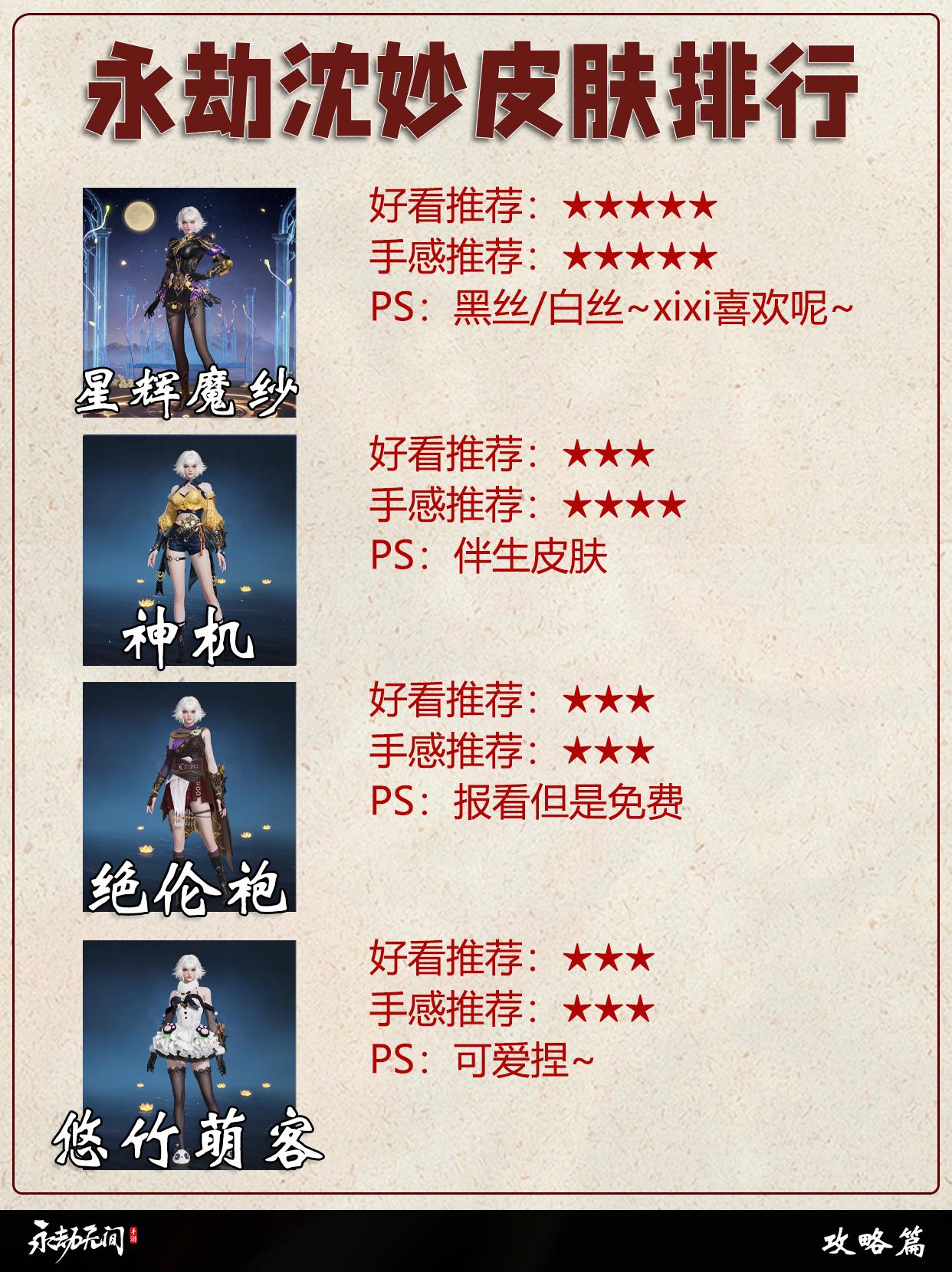 永劫沈妙全皮肤排行。