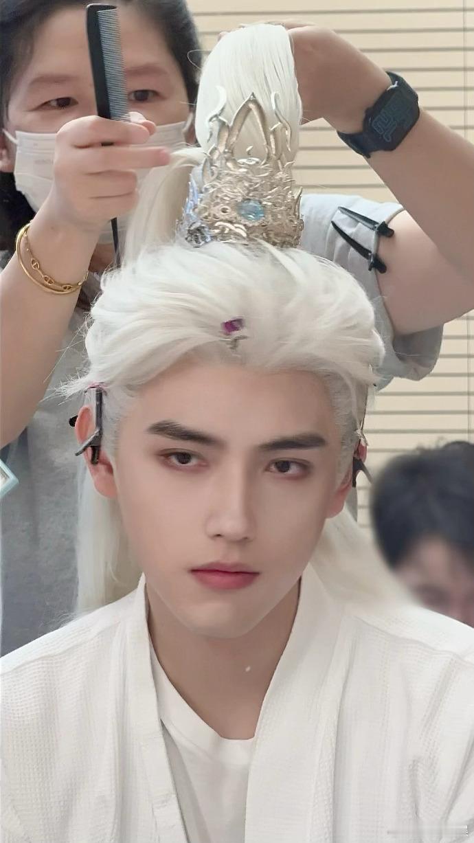 陈飞宇白发仙君造型live图陈飞宇白发仙君四宫格白发束起露出精致下颌线,li