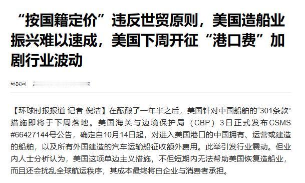 我们必须打赢这场战争!这是一场关乎中国未来的生存战争。我们退一步,全球供应链就塌;我们让一步,百年海权就断。现在,不是谈条件的时候。 10月14日,美国针对中国航运的港口新规就要正式生效了。这规矩压根不是什么正常的管理措施,明摆着就是冲着中国航运业的命门来的。 这里边规定不管是咱们企业运营的船,还是中国造的船,只要靠美国港口,就得按净吨位或者集装箱数量额外掏钱,而且这费用一年比一年高,三五年下来能翻好几倍。更狠的是,连港口用的起重机、集装箱底盘这些设备,他们都打算加征百分百的关税,摆明了要把中国航运的成本抬到天上去。 以一艘一万标准箱的货船为例,以前跑一趟美国港口是能赚些辛苦钱,可是新规一落地,光额外的费用就得摊到每个集装箱上几百美元。国内那些做机电产品、日用品出口的企业本来利润就薄,这成本要么自己扛着把利润挤没,要么涨价让美国客户买单,可美国市场上咱们的货早就和当地民生绑在一起了,真涨了价,最后还是全球消费者跟着受影响。 要知道,去年中美双边货物贸易额都快七千亿美元了,中国的货满足着美国市场的刚需,他们的农产品、芯片也靠着中国市场走量,这种你中有我的供应链,哪经得起这么折腾。 这还不只是钱的事儿,背后藏着更阴的心思。美国特意说了,要是船东订美国造的船,就能豁免好几年费用,还逼着LNG运输得慢慢换成美国造的船。 这明摆着是想把中国的造船业和航运业挤出国际市场。中国造船业这些年好不容易拼到世界前列,远洋航运的船队更是咱们海权的腿,要是真顺着他们的规矩来,要么花钱买美国的船,要么慢慢失去航线,用不了几年,咱们在太平洋上的航运话语权就得被架空。 之前中美经贸会谈刚有点进展的时候,深圳盐田港都能忙到泊位爆满,美国洛杉矶港也从冷清变热闹,这说明供应链的韧性全靠双方的互补性撑着。 可美国现在非要用行政手段撕口子,那些运小麦大豆的空船能豁免,偏偏装着工业产品、日用品的货船要被重罚,这不就是选择性打击嘛。世界航运理事会都觉得这规矩合法性存疑,可他们不管,就是要借着港口收费卡脖子,逼咱们在贸易和海权上让步。 只是一旦咱们退了,不仅国内航运企业得倒闭一批,全球供应链的链条都得断。中国货出不去,美国超市货架会空,东南亚的组装厂拿不到零件也得停工;而咱们的海权要是断了,百年前那种被人掐住航运命脉的日子可能就要重演。 所以说,现在可不是坐下来谈条件的时候,咱们唯一能做的就是硬扛,一方面想办法优化航线,和其他国家的港口加深合作,减少对美港口的单一依赖;另一方面,国内的造船和航运企业得抱团,把成本控制住,不能被这波收费打垮。 这场仗没硝烟,但比真刀真枪更关键,赢了就能守住供应链的稳定,保住海权的根基,输了可能就要被压着抬不起头。