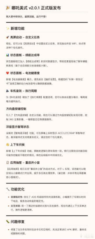 哪吒汽车已经有大佬自己端出了更新包并进行及时维护,不过比较可惜的是,哪吒U、哪