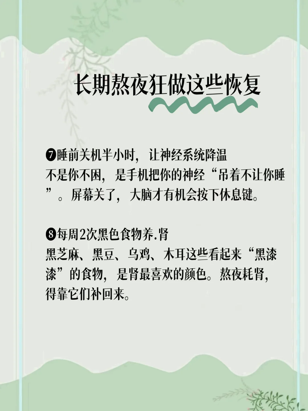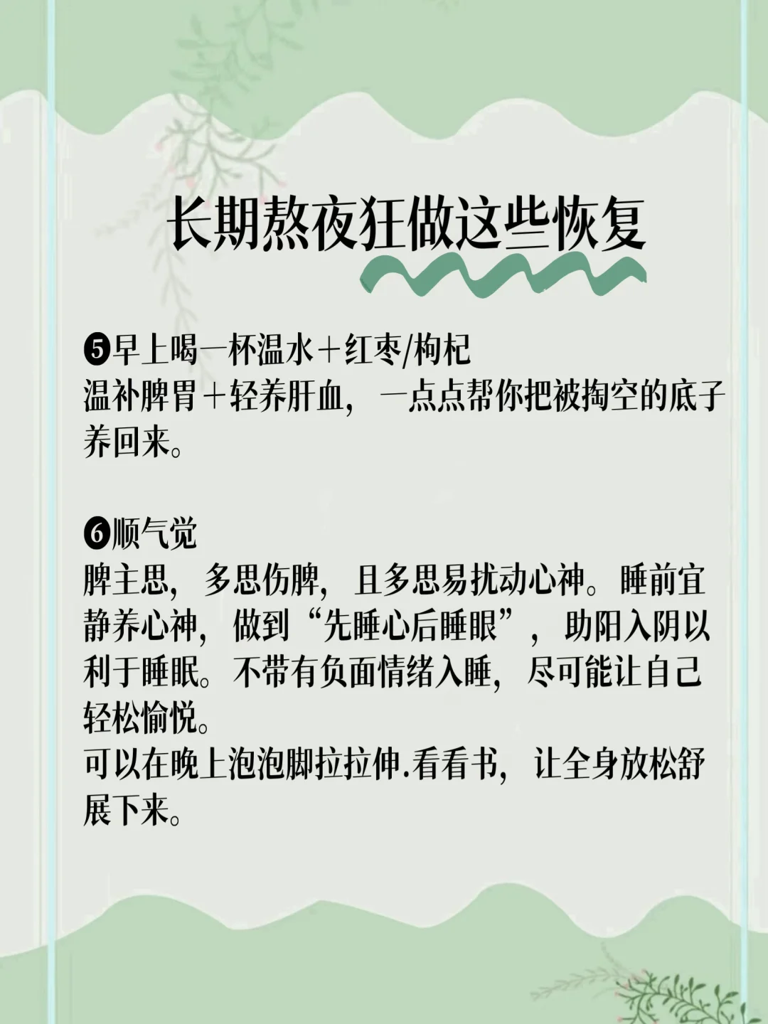 🌃凌晨刷手机、熬夜赶工,早已是很多人的日常。我们总觉得熬夜不算事,却没发现身体在悄悄透支,长期熬夜造成的损害正在悄无声息地侵蚀你的免疫系统、内分泌、皮肤、情绪.. 身体并非开关,关闭许久后再开启,是一场需要时间去“修复重建”的系统工程。分享8个简单的恢复方法,长期坚持,帮你慢慢补回精力!