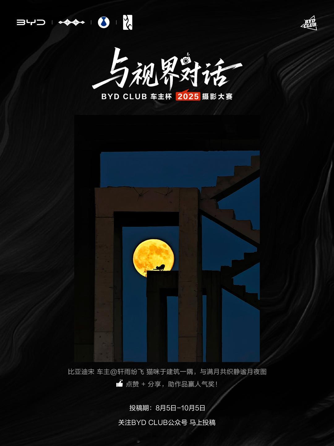 最后,咱就是说,距离投稿截止仅剩20天!其他的比亚迪车主还未参与的话,赶快用镜头记录你的视界;若已投稿,别忘了扩散作品角逐人气奖。长路漫漫,故事待续,期待你的镜头成为下一份惊喜!人气奖比亚迪汽车