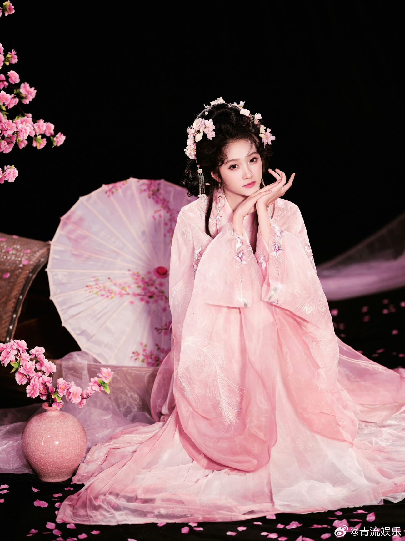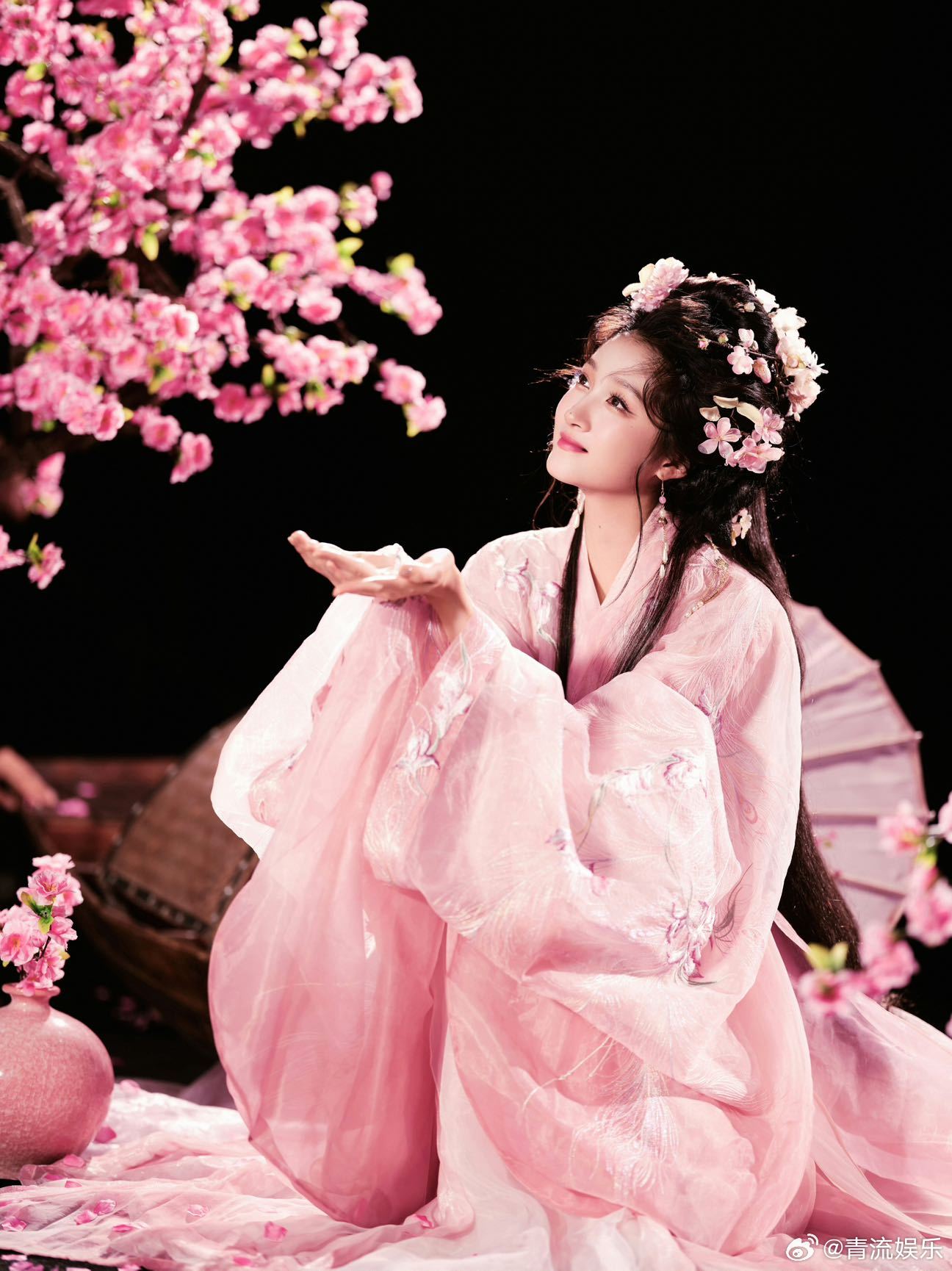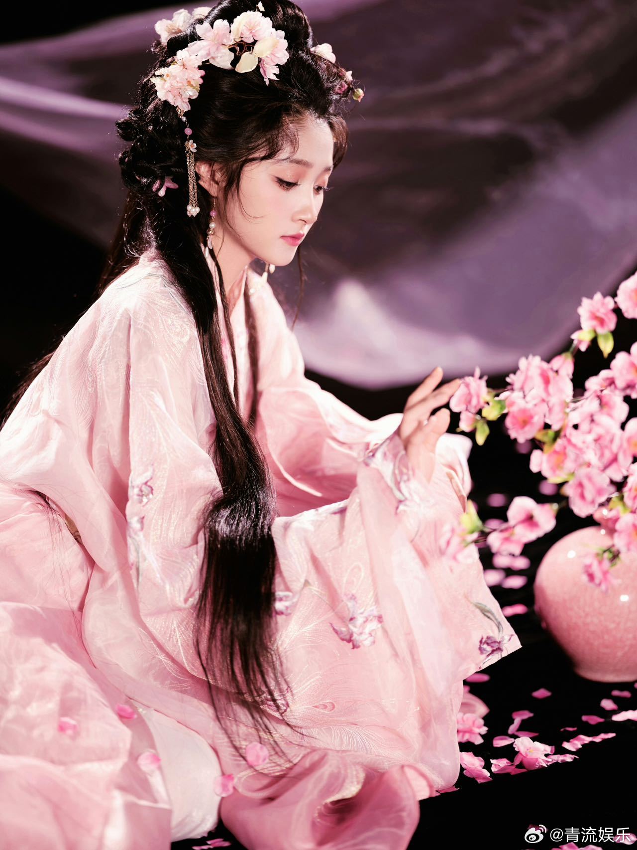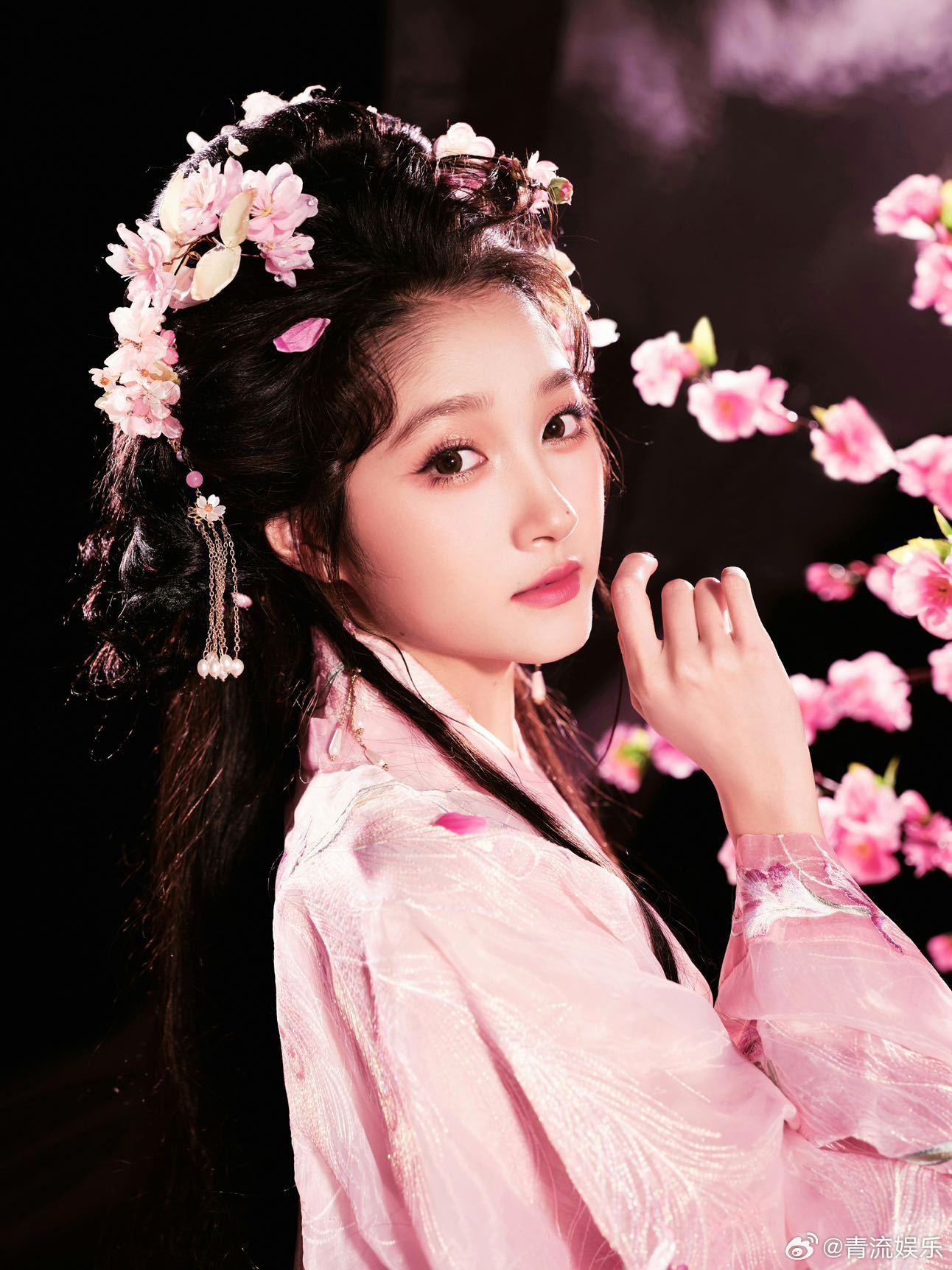 关晓彤桃花仙子造型 关晓彤身穿粉色古风长裙演唱《桃花笑》,一颦一笑皆动人,完全就是小说里一眼万年的女主! 关晓彤粉衣古装