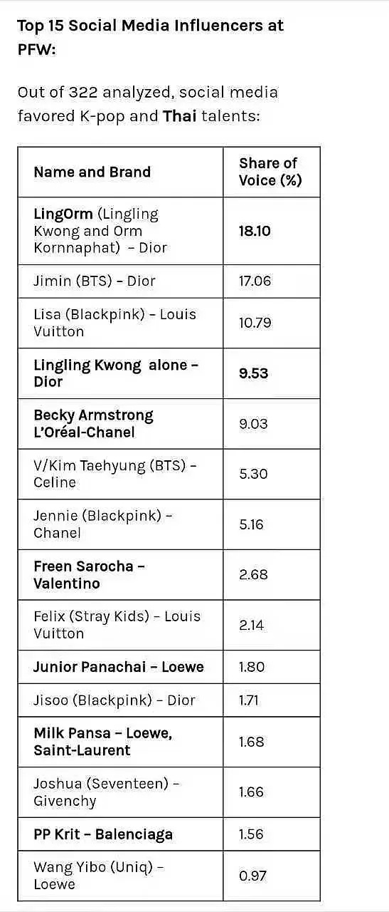 才发现王一博是唯一上了巴黎时装周期间 社媒最有影响力名人榜单的人