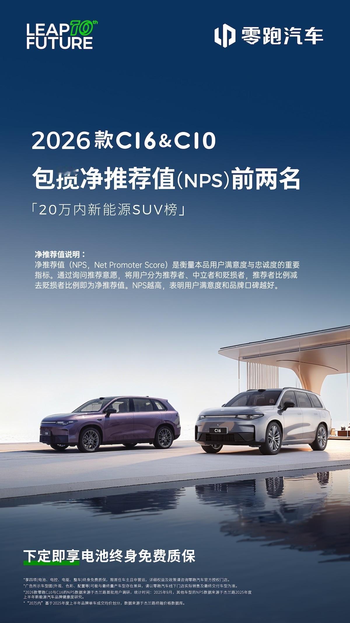 预算不到20万想买大六座,还能一步到位买到冰箱彩电大沙发? 当代家庭购车对“品质”的需求越来越高,可每家对“品质”的定义不尽相同、预算往往也就20万以内,到底该怎么选?很简单,选一台能一步到位的,比如2026款零跑C16。 这大六座,空间肯定要大吧?C16的后翻电机+CTC2.0技术,让它比肩轴距3米的大家伙;而且二排滑轨式调节+190mm通道,能平衡全家三代人同乘,出入后排也方便。如果是腰背不适,车辆还有全车Nappa真皮座椅,并给到了双排按摩,二排仰角可达155°,躺着出行更舒适。 出游途中想加餐,或是孩子要玩玩具,它也有二排小桌板,而且车载冰箱还能提供夏季冰品、冬季热饮。怕途中无聊或是露营遇到突降大雨,它的15.6英寸吸顶屏+21扬杜比全景声音响,能立马化身影厅,追剧看大片都行。 说到出游,甭管是城里高峰期,还是长途驾驶都容易疲倦,而C16除了8295智舱外,还给了8650+激光雷达端到端辅助驾驶,NAP高速领航辅助+CNAP通勤领航辅助,让长时间驾车也舒心。 此外,车辆还有800V+630km续航的纯电版,有纯电续航280km的增程版可选。别怕产品没保障,C16可是跟26款C10一起包揽了20万内新能源SUV榜净推荐值(NPS)前两名的,并且实现了20万内中大型SUV月销“八连冠”,用户口碑足以说明问题。这一个国庆,零跑就新增订单2.5万台,不先下手恐怕就要等了。