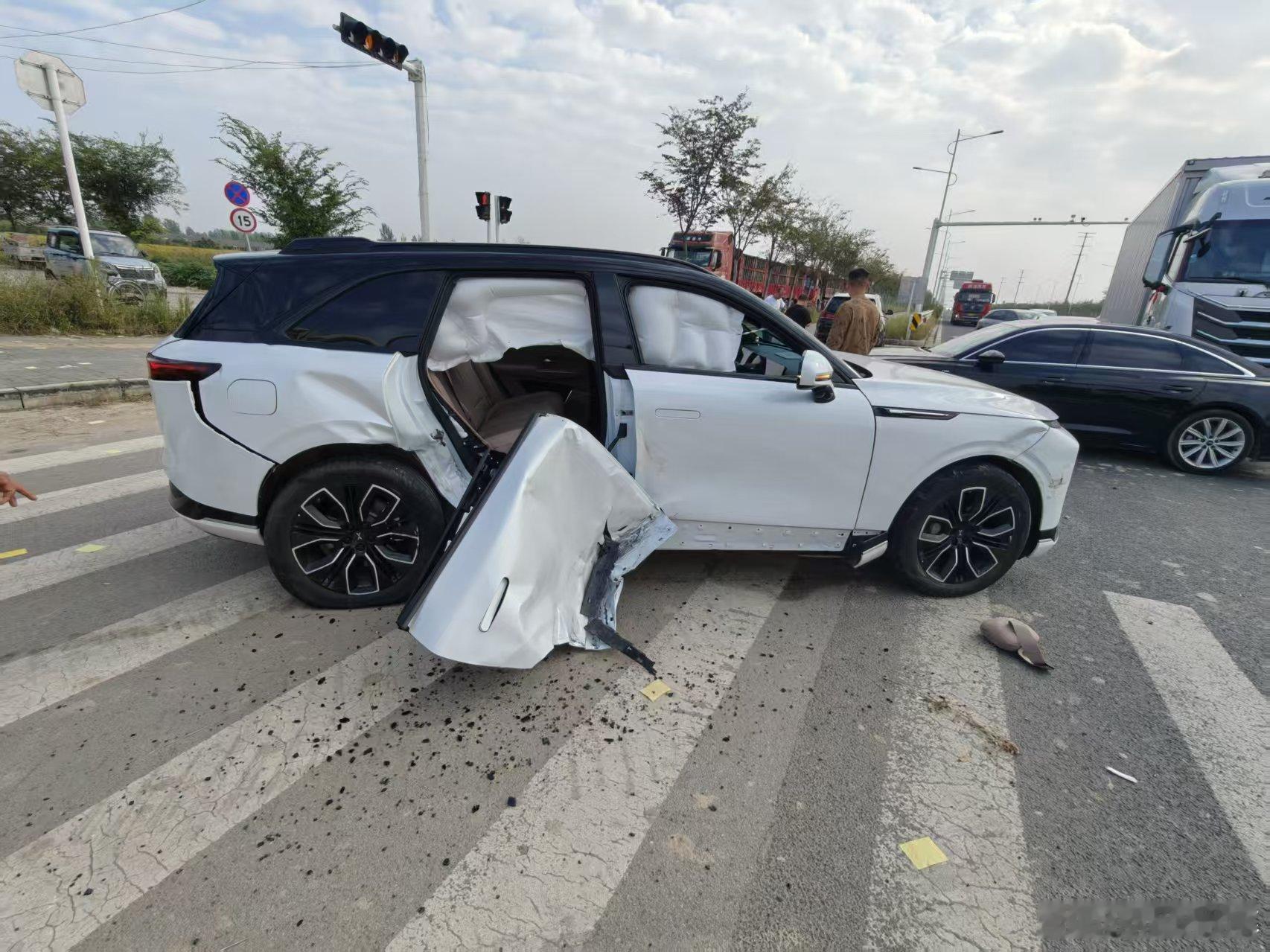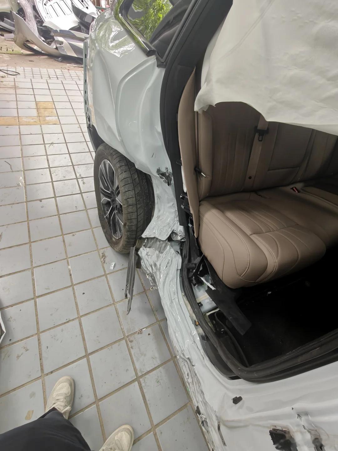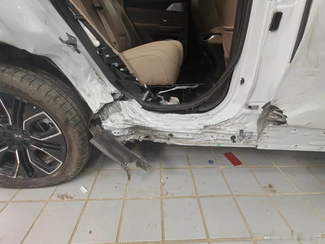 后又提供了详细的车辆照片,可以看得出来撞击力度非常大,车辆受损不轻,但是整体车身结构非常完整,没有任何侵入座舱。