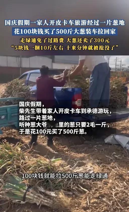 信息茧房有多厉害哈,看完,保证你眼睛瞪的像铜铃! 这不前段时间放假了吗?一帮大聪明为了走免费的假期高速,眼睛瞪得像铜铃,手握着方向盘,手拿把掐的赶着返程免费倒计时,人家真正的大“葱明”已经切换了赛道! 看完忍不住赞叹:简直就是太“葱明”了! 一网友带着一家人假期出门旅游,等到回程的时候,紧赶慢赶,假期免费高速也马上就到时间了。 也巧,网友恰好路过一片葱地,这葱一看就郁郁葱葱的,炒个鸡蛋那不喷喷香,正赶上菜农大哥在买,想着问问价吧,不问不知道,一问吓一跳! 超市里4.5一斤的大葱,在源头的地里,竟然只要两毛钱一斤! 吃不穷喝不穷,算计不到就受穷,网友也是会过日子的人,脑袋瓜一转悠,买100块钱的。 愣是买了500斤!皮卡的后车厢装的满满当当,悠哉悠哉就拉着500斤葱往回走,等到下高速的时候,收费员一看,拉的啥这是绿油油的? 网友一展示,满满一车兜,500斤!大葱!收费员当即表示,500斤这算大宗农产品了,绿通!通行费?免! 要不说信息差呢,就这样,网友一家人满载而归,回到家,七大姑八大姨,亲戚朋友邻里的,分吧分吧,实在分不了的,5元一捆,愣是又卖了300块钱! 你说说这事!你就说聪明不聪明吧? 别说高速费了,油钱都赚回来了。 要不说,人永远赚不到认知以外的钱呢! 啧啧……要是我,我也就坐地头吃两棵葱,赞叹两句粒粒皆辛苦!信息差就是金钱啊!
