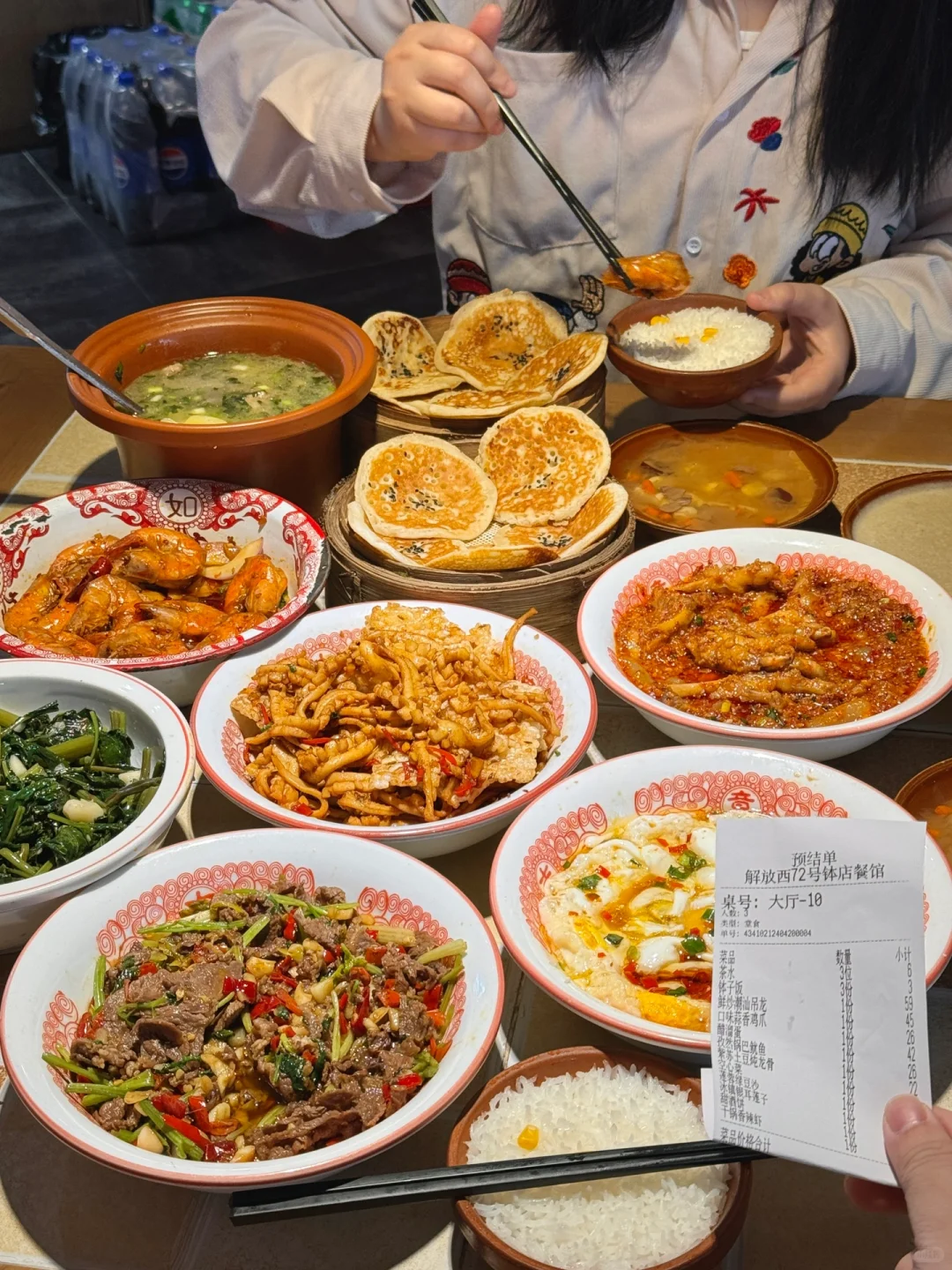 该怎么形容这家(叫:解放西72号)我有多喜欢!一周去吃三四次了!真心平价好吃…经常还看到有人提着行李箱来吃!!我们点了满满一大桌人均才45左右💰真的不输给某萝卜好吗!!菜品份量扎实还好吃平价。饭点都坐满了本地人,巨巨巨🔥。 求求了🥹🥹别只知道去网红店排队了!这里不香吗?